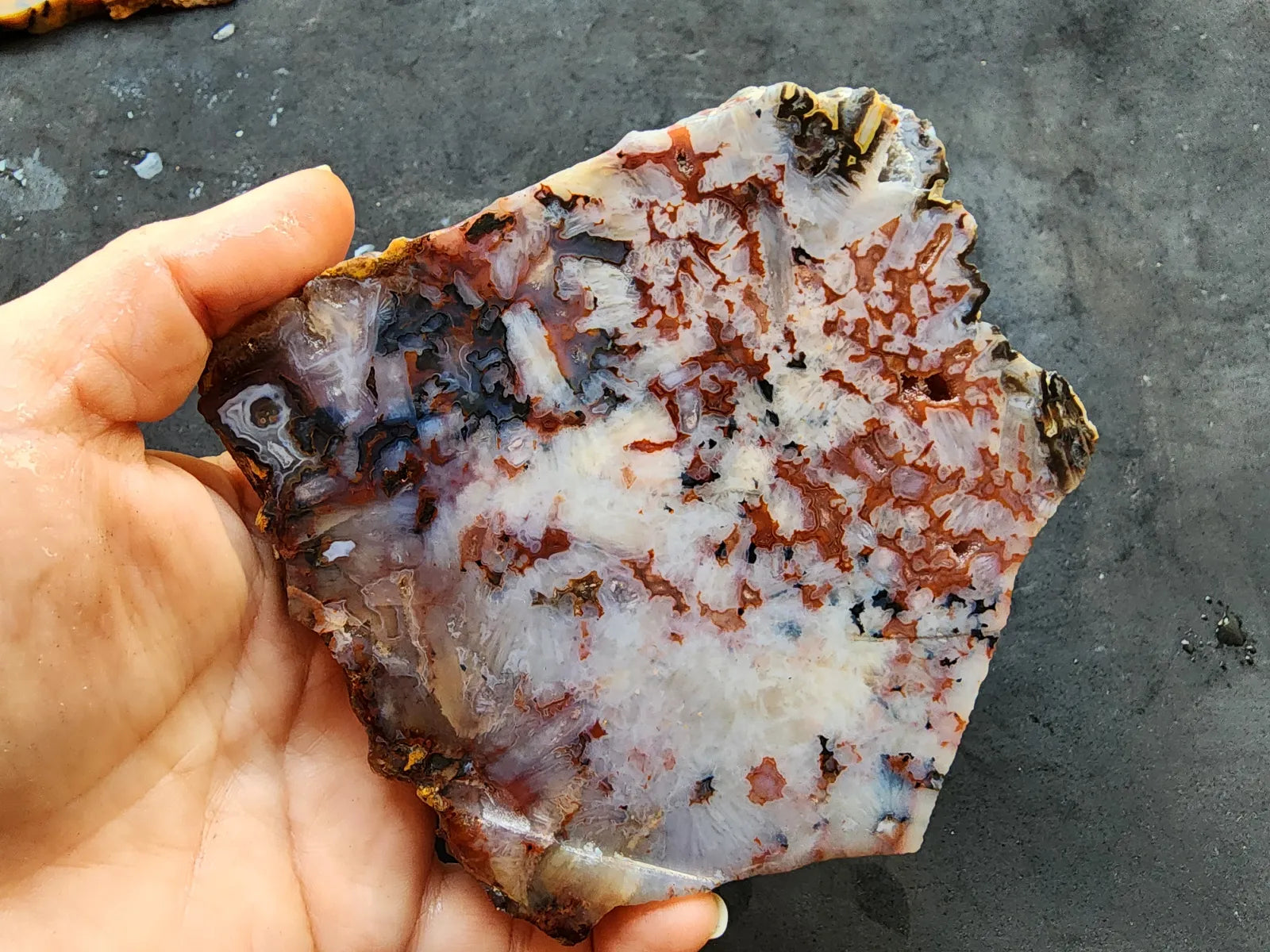 IMPORTANT 👉 When you receive these agate slabs / opal slab, the colors will look like they do in the pictures that show the weight and dimensions. You can polish them yourself, or have them polished. Or, as some prefer, not polish them at all -- completely up to you.