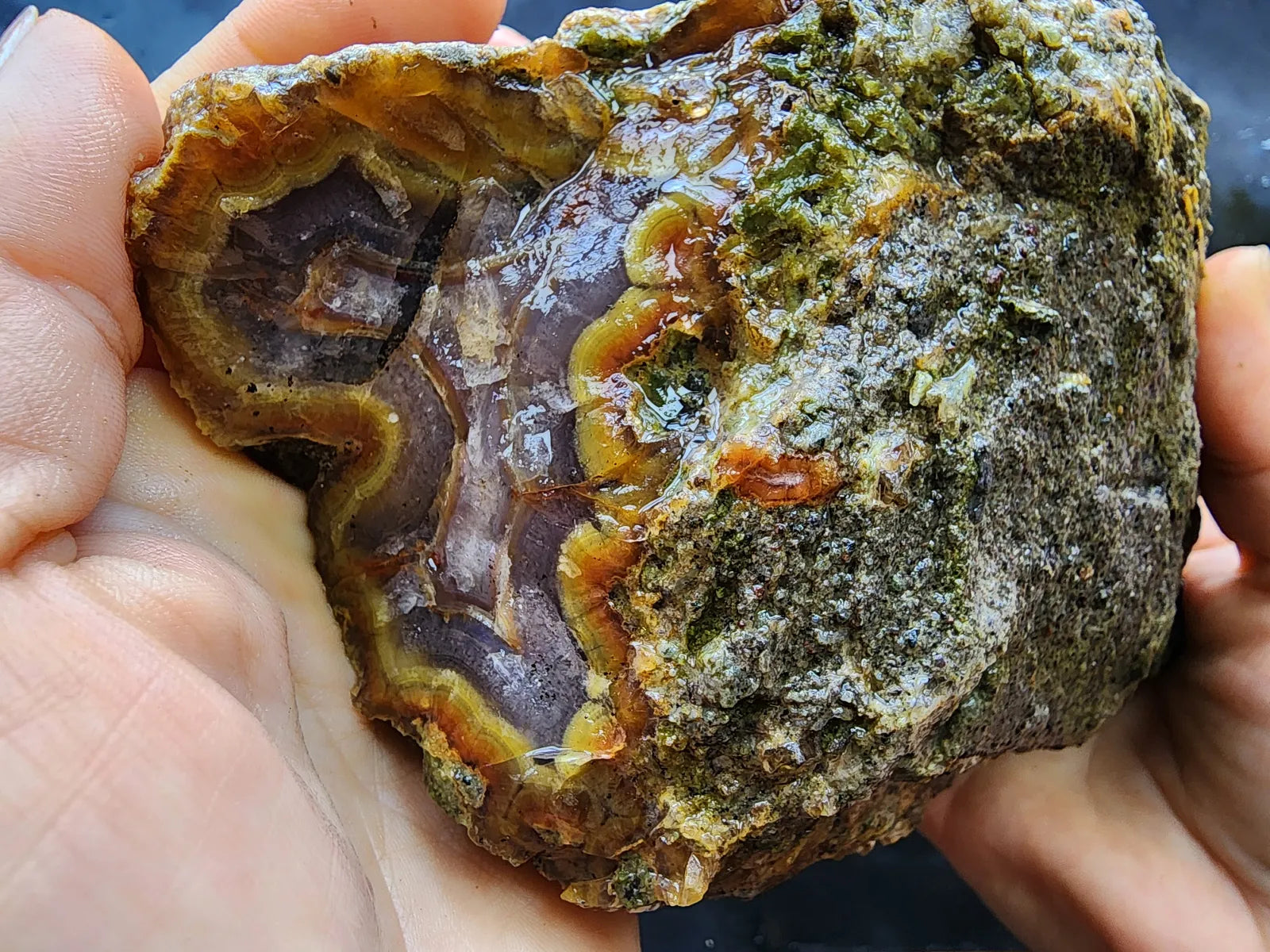 This listing is for one unpolished, undyed, 100% natural limb cast / agatized petrified wood from northwest Anatolia in Turkey weighing a total of 4.6 lbs (2.11 kg). The first 11 pictures and video were taken outdoors with the limb cast wet; the rest, indoors and dry. We did not apply any filters to the photos or video, before or after taking them.