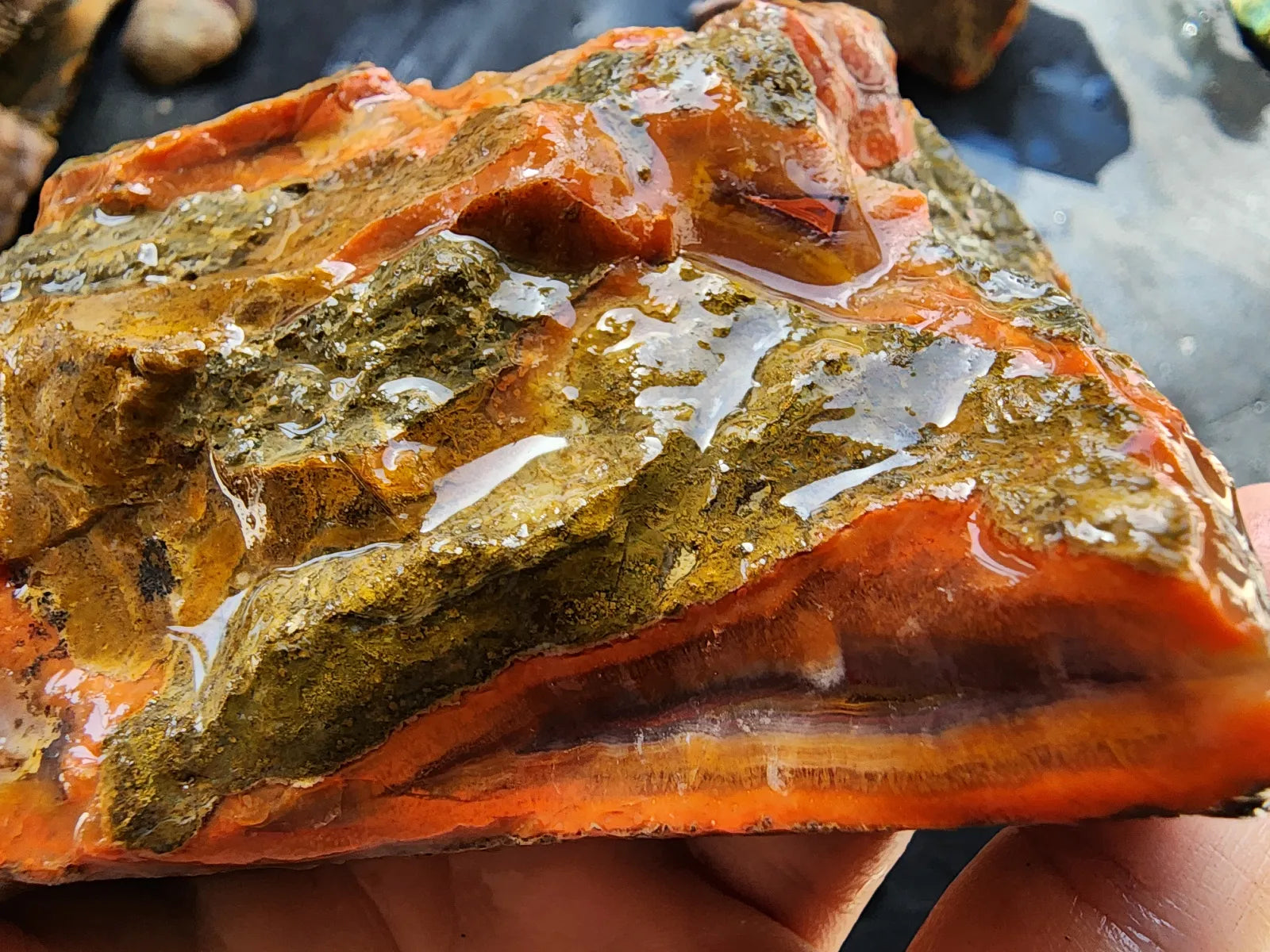 This listing is for an unpolished, undyed, 100% natural Black Sea agate pair from Turkey weighing a total of 27.4 oz (777 gr). The first 12 pictures and video were taken outdoors with the orange agate wet (not under direct sunlight); the rest, indoors and dry. We did not apply any filters to the photos or video, before or after taking them. They will grace any rock cabinet, any rock collection.