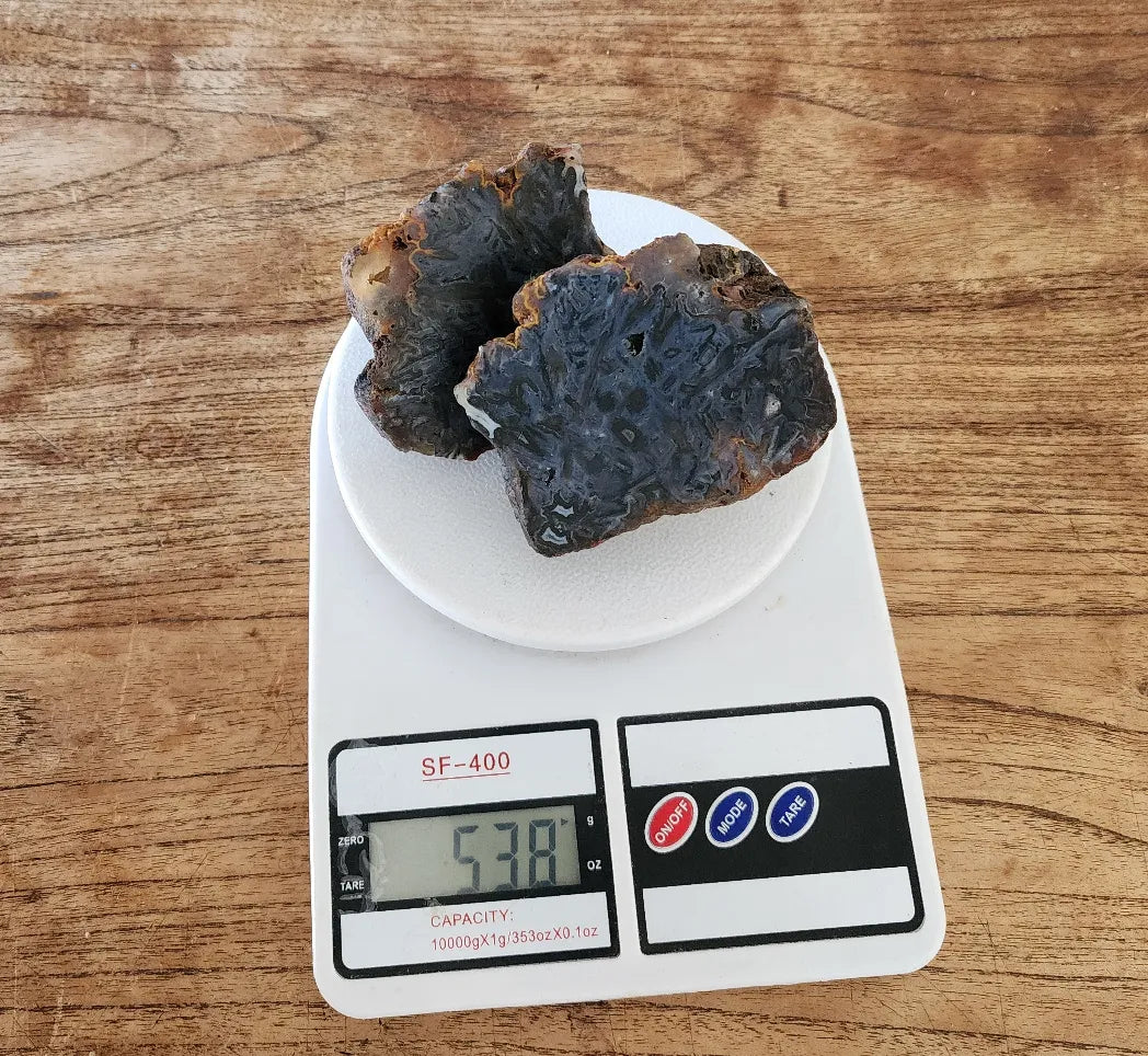 This raw agate pair is also a healing stone -- it's perfect for chakra balancing, manifestation, and divination if you are spiritually-inclined and interested in metaphysical stones, meditation rocks, and spiritual gifts. It's an ideal agate gift, geology gift or rock hound gift. Needless to say this agate rough will turn out truly exceptional cabs with intricate motifs. Thinking in terms of decor accents? Once you have this beauty polished and give it proper lighting, it will serve as a fabulous decor object.