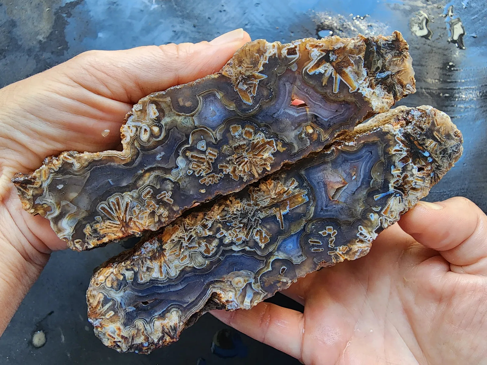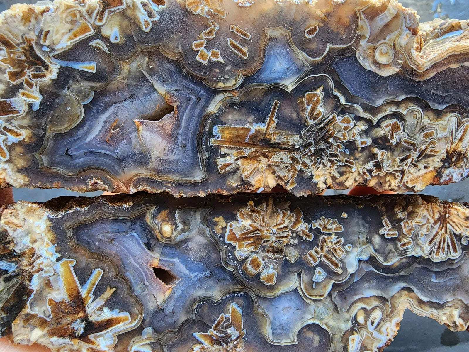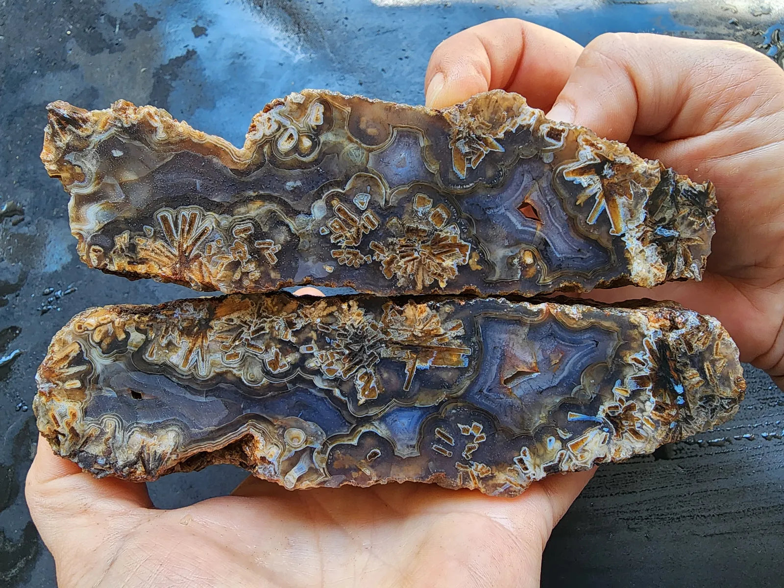 This top agate pair is also a healing stone -- it's perfect for chakra balancing, manifestation, and divination if you are spiritually-inclined and interested in metaphysical crystals, meditation crystals, and spiritual crystals. It's an ideal crystal gift, agate gift, geology gift or rock hound gift. Aside from being a perfect collectible agate and an equally perfect gift, it's spectacular in terms of lapidary materials -- the possibilities are endless. It's one of those agates that are perfect for all occasions and purposes. As an agate display piece, it would light up any space.