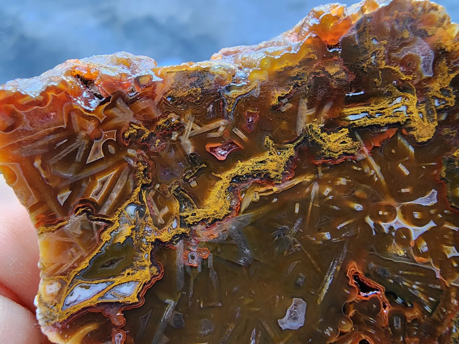 This sagenite agate is also a healing stone -- it's perfect for chakra alignment, manifestation, and divination if you are spiritually-inclined and interested in metaphysical stones, meditation rocks, and spiritual gifts. It's an ideal agate gift, geologist gift or rock hound gift and will display very handsomely as home decor, office decor, or room decor. It can be displayed as an interior design element in any space. If you're looking for rocks for cabbing, this agate will definitely do the job and then some.