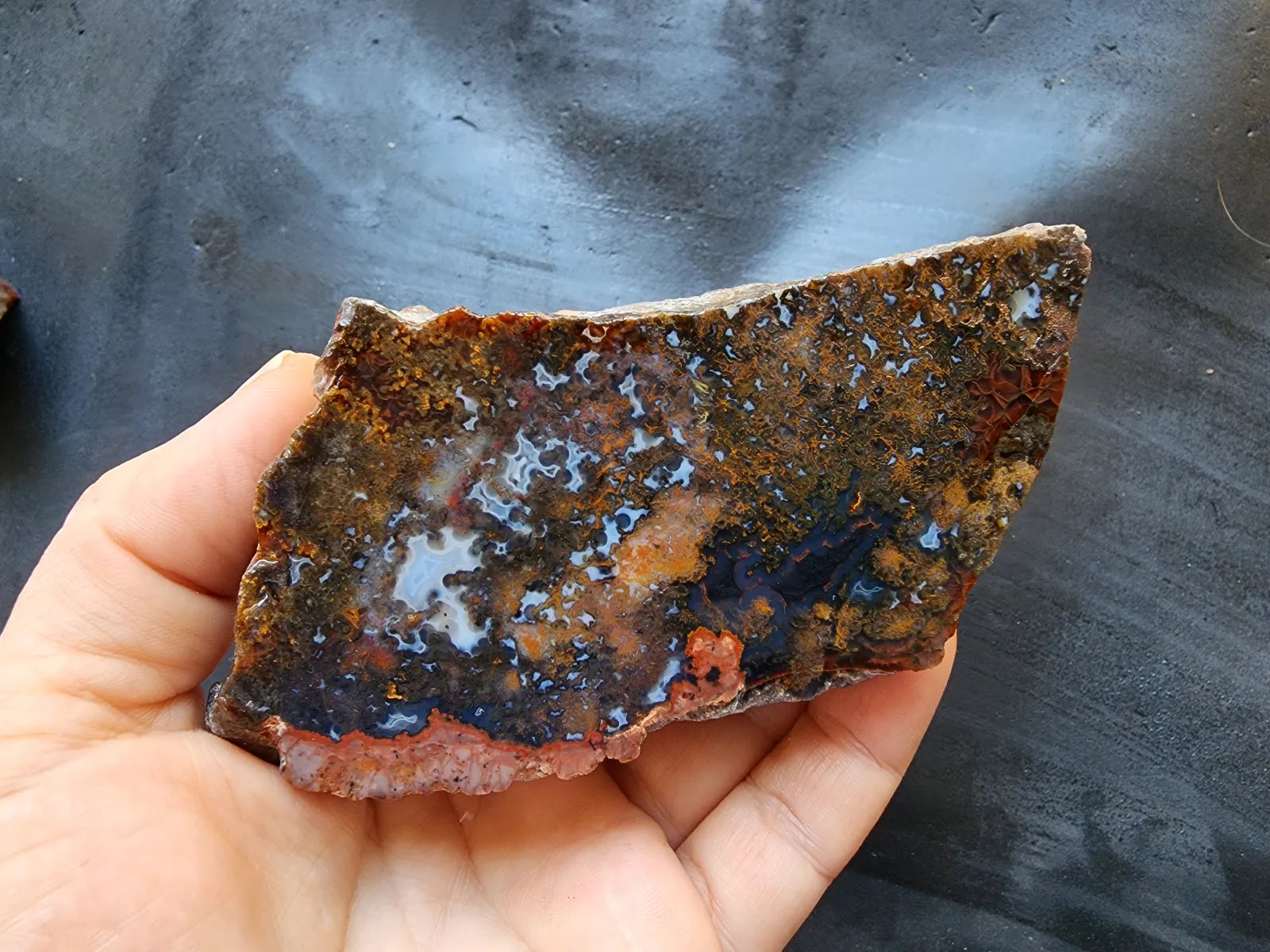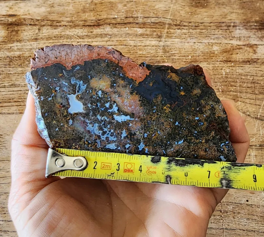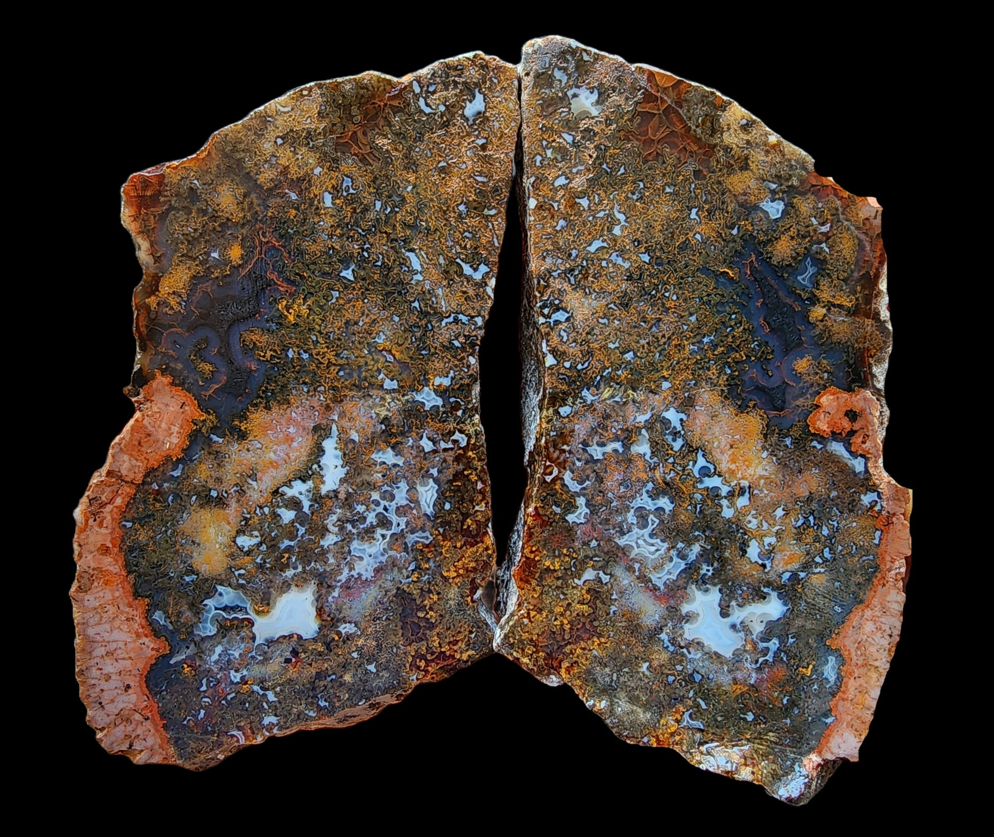 This listing is for an unpolished, undyed, 100% natural plume agate pair from Turkey weighing a total of 20.95oz (594 gr). The first eight pictures and video were taken outdoors with the plume agate slabs wet (not under direct sunlight); the rest, indoors and dry. We did not apply any filters to the photos or video, before or after taking them. They will grace any rock collection and provide wonderful cabs and slabs, if you're looking for cabbing rough.