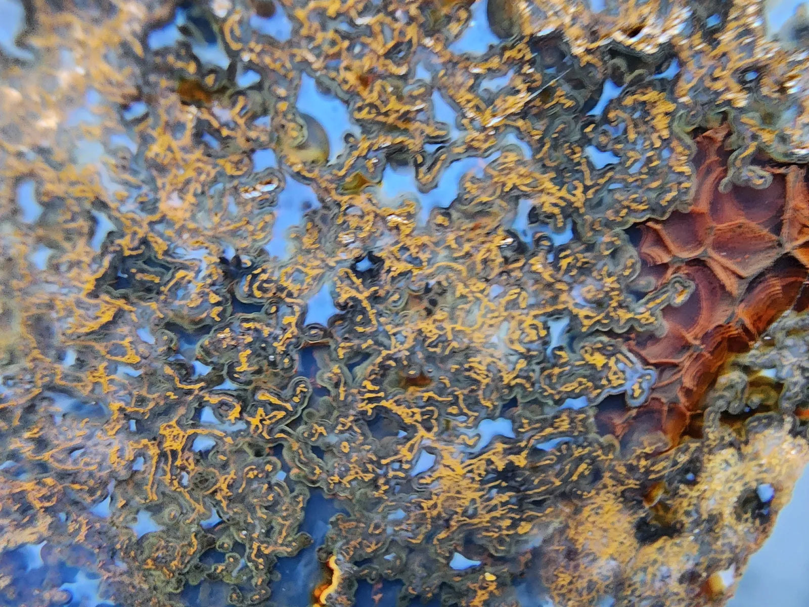 This intricately-patterned agate rock is also a healing stone -- it's perfect for chakra alignment, manifestation, and divination if you are spiritually-inclined and interested in metaphysical stones, meditation rocks, and spiritual gifts. It's an ideal agate gift, geologist gift or rock hound gift and will display very handsomely as home decor, office decor, or room decor. It can be displayed as an interior design element in any space.