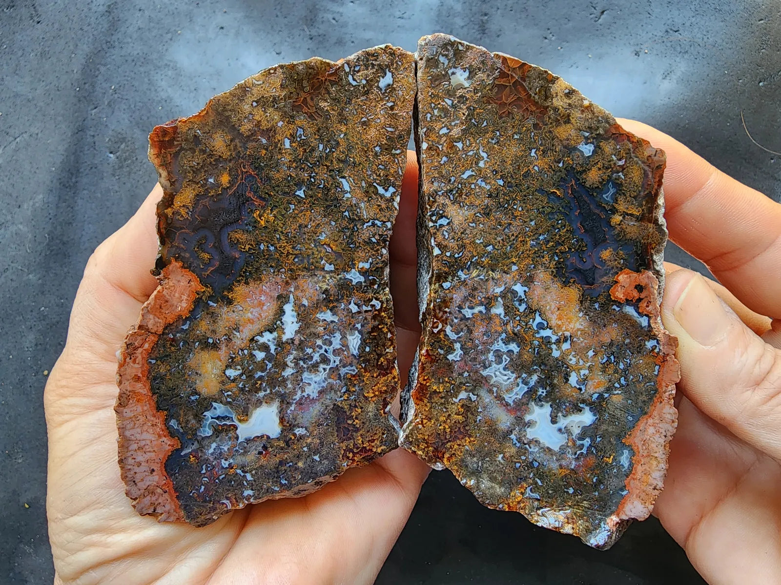 IMPORTANT 👉 When you receive this rough plume agate pair, the colors will look like they do in the weight photo. You can polish them yourself, or have them polished. Or, as some prefer, not polish at all -- completely up to you.