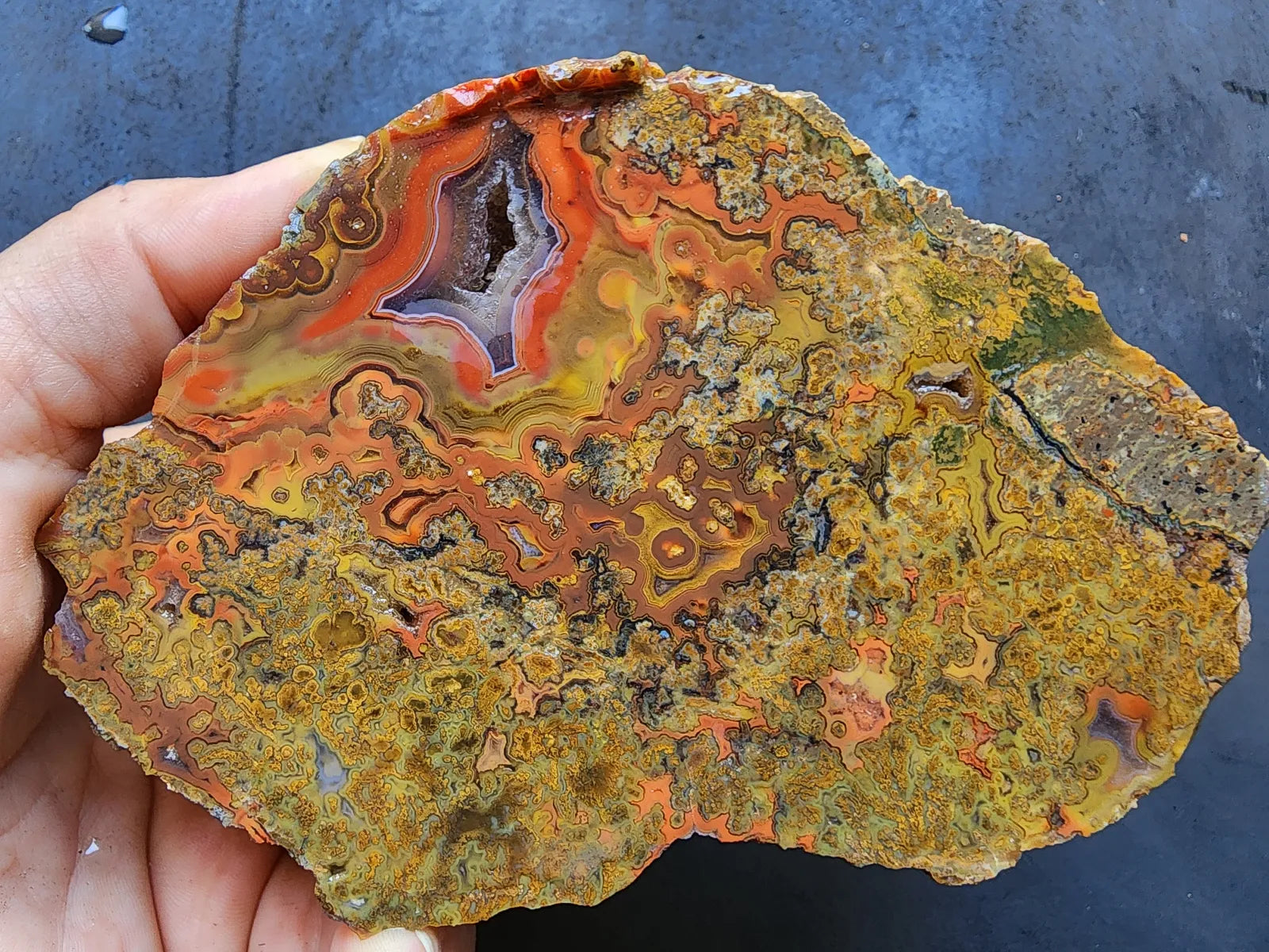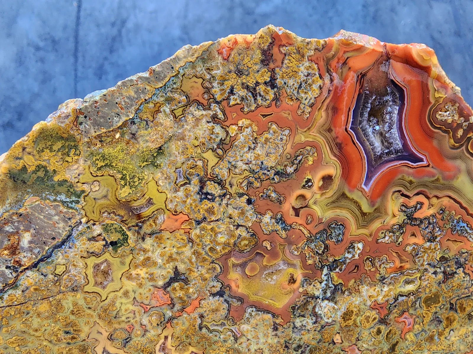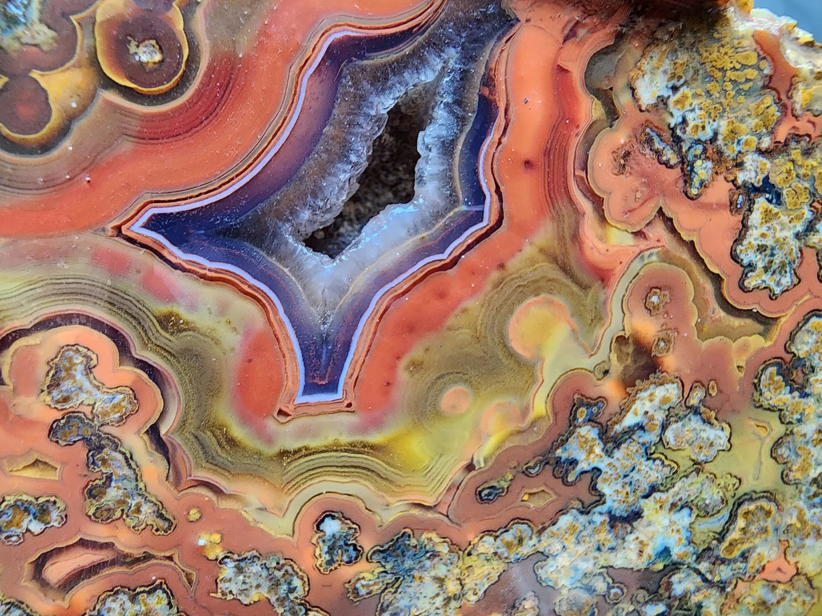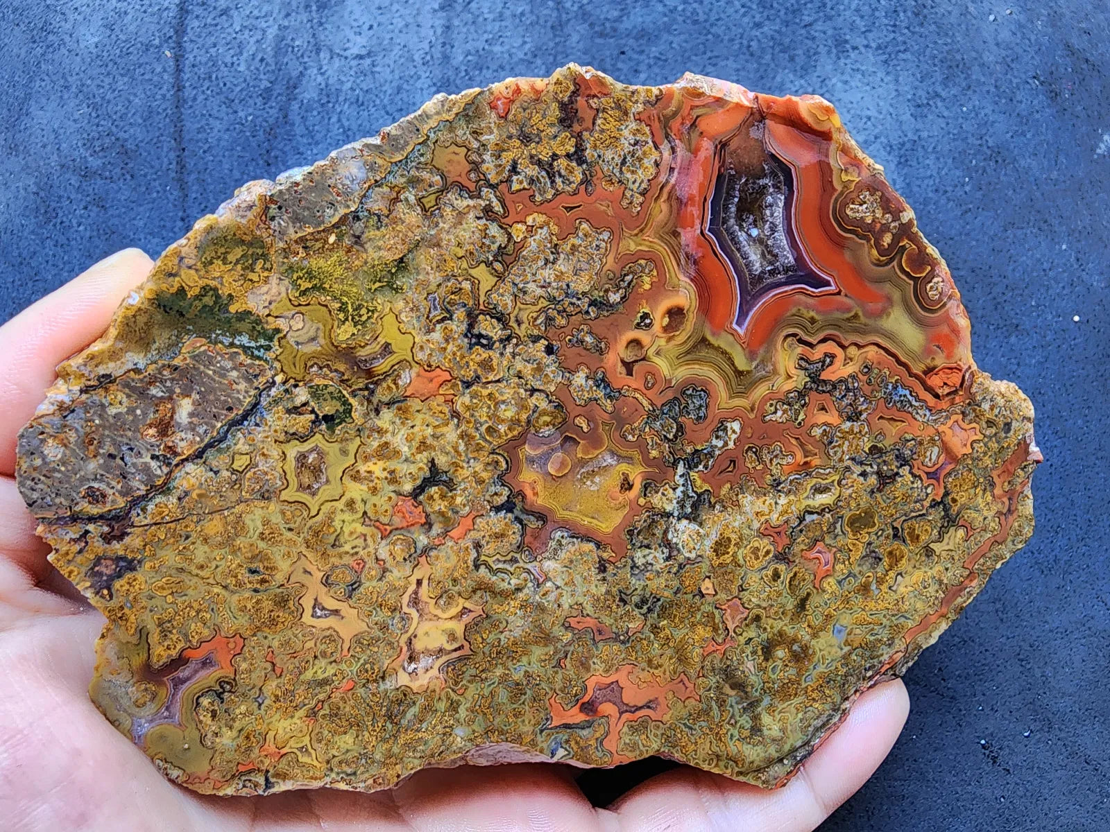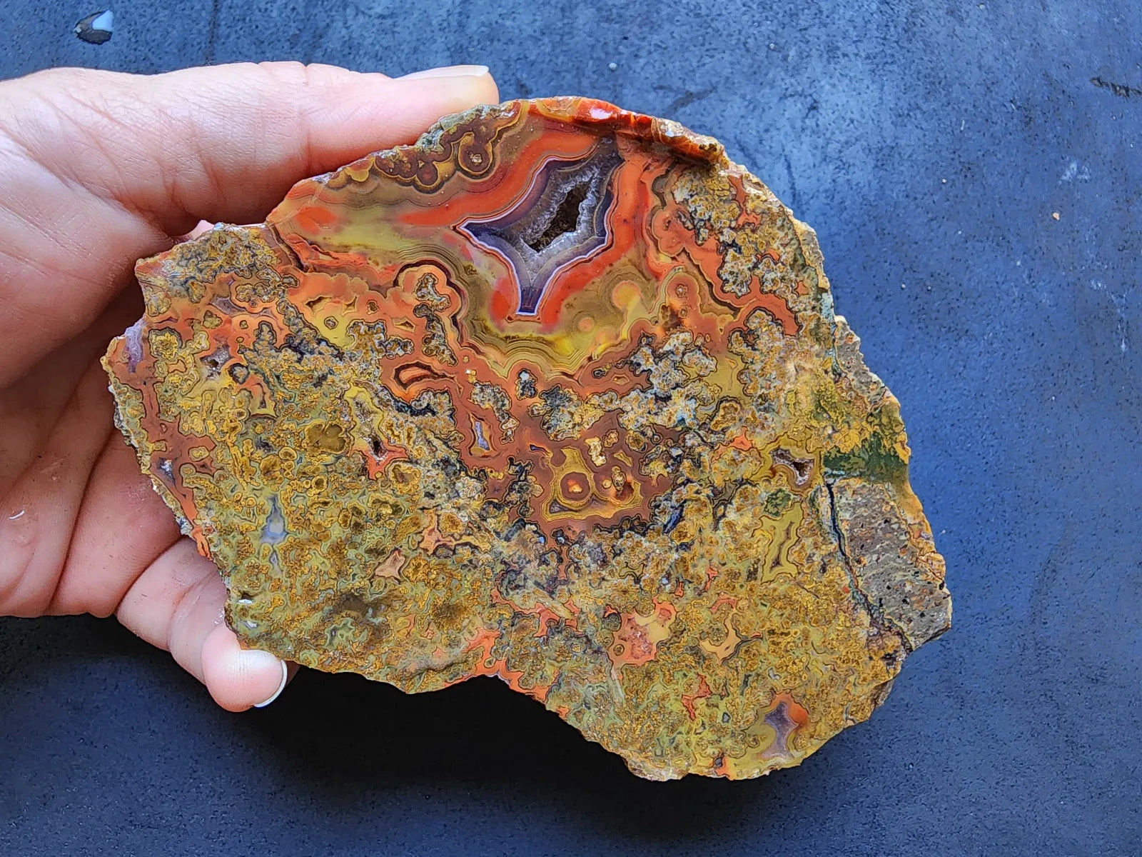 This beautiful agate is also a healing stone -- it's perfect for chakra alignment, manifestation, and divination if you are spiritually-inclined and interested in metaphysical stones, meditation stones, and spiritual gifts. It's an ideal agate gift, geologist gift or rockhound gift and will display very handsomely as a natural agate decor piece -- as home decor, office decor, or room decor. It can be displayed as an interior design element in any space.