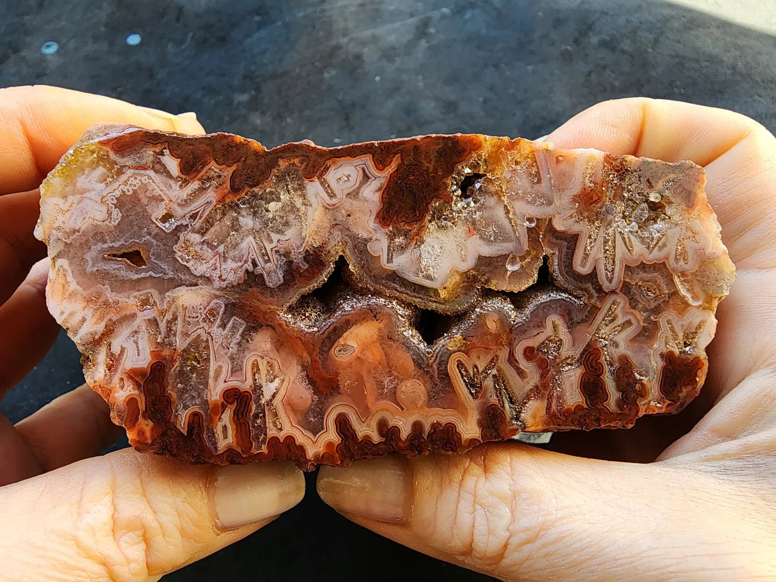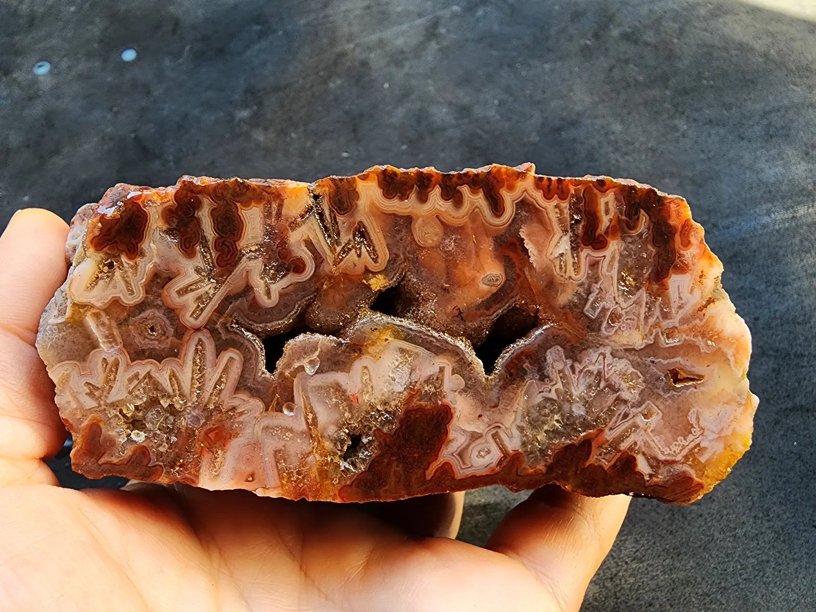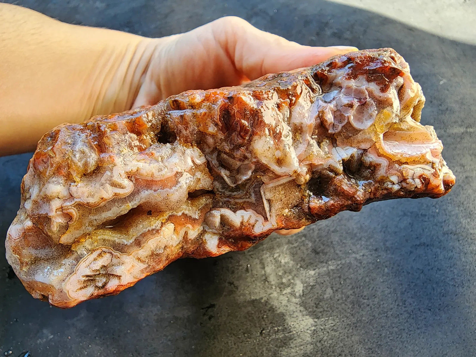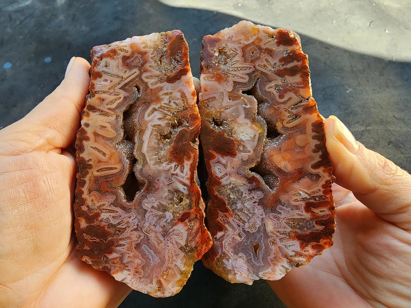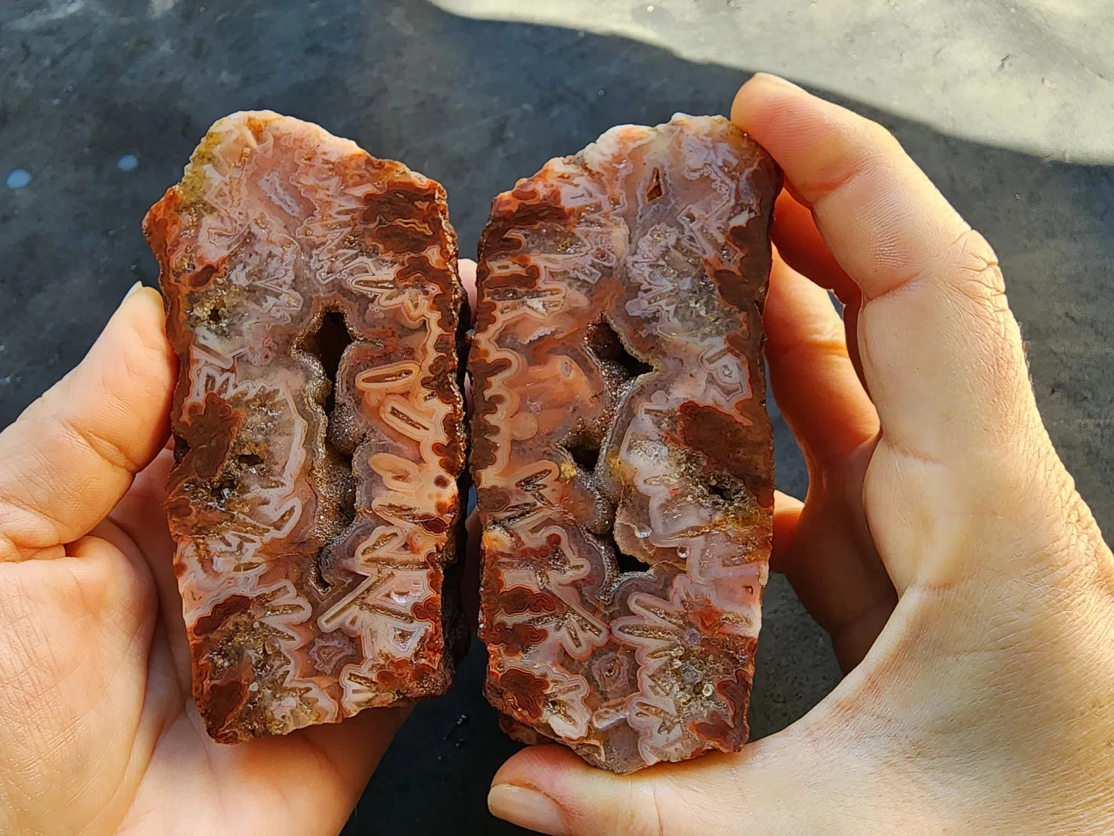 This decorative agate pair is also a healing stone -- it's perfect for chakra balancing, manifestation, and divination if you are spiritually-inclined and interested in metaphysical stones, meditation rocks, and spiritual gifts. It's an ideal agate gift, geology gift or rock hound gift. Thinking in terms of room decor / decor accents? Once you have this beauty polished and give it proper lighting, it will serve as a fabulous decor object.