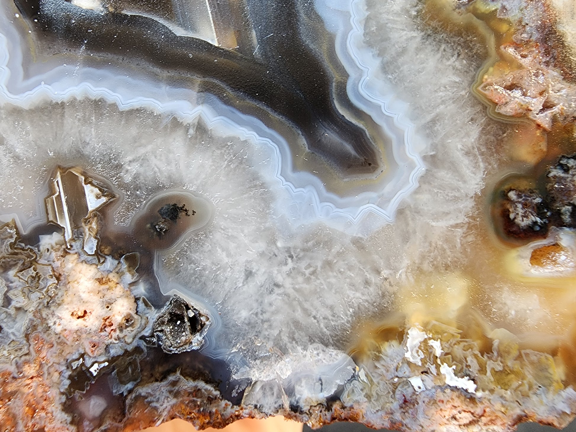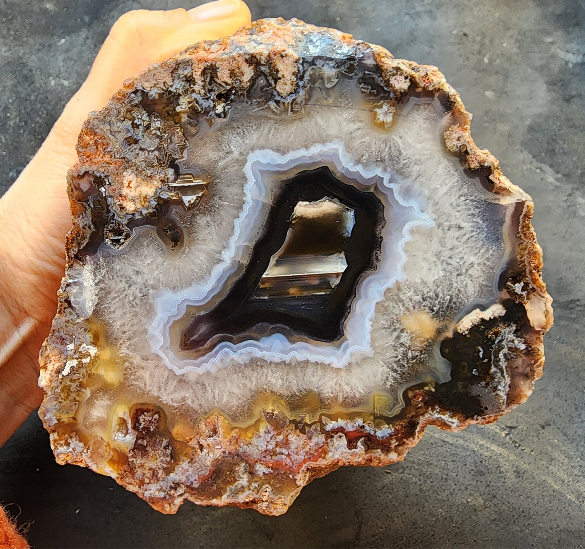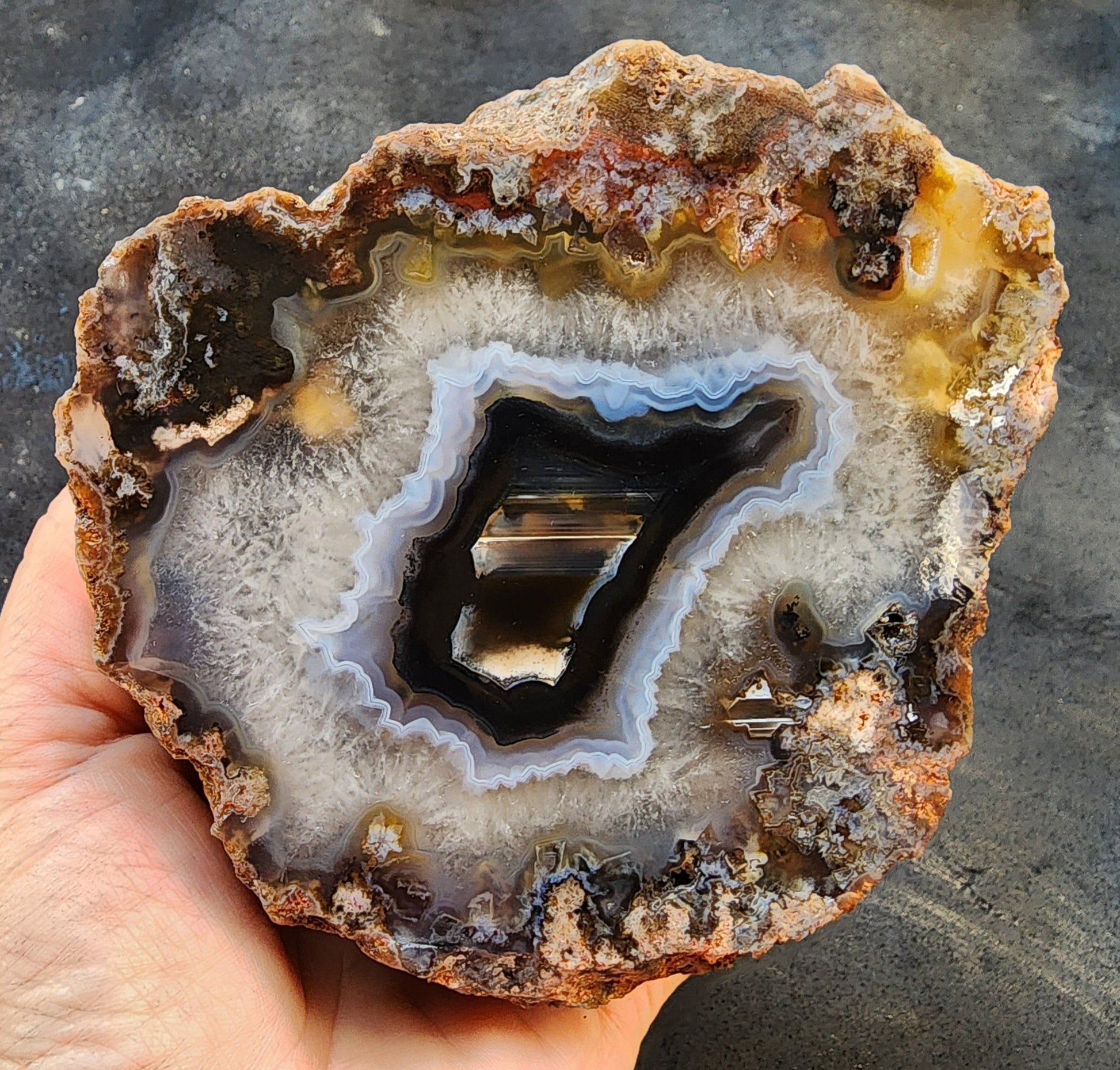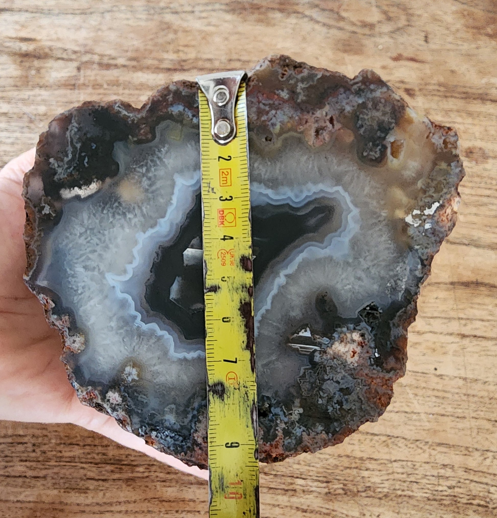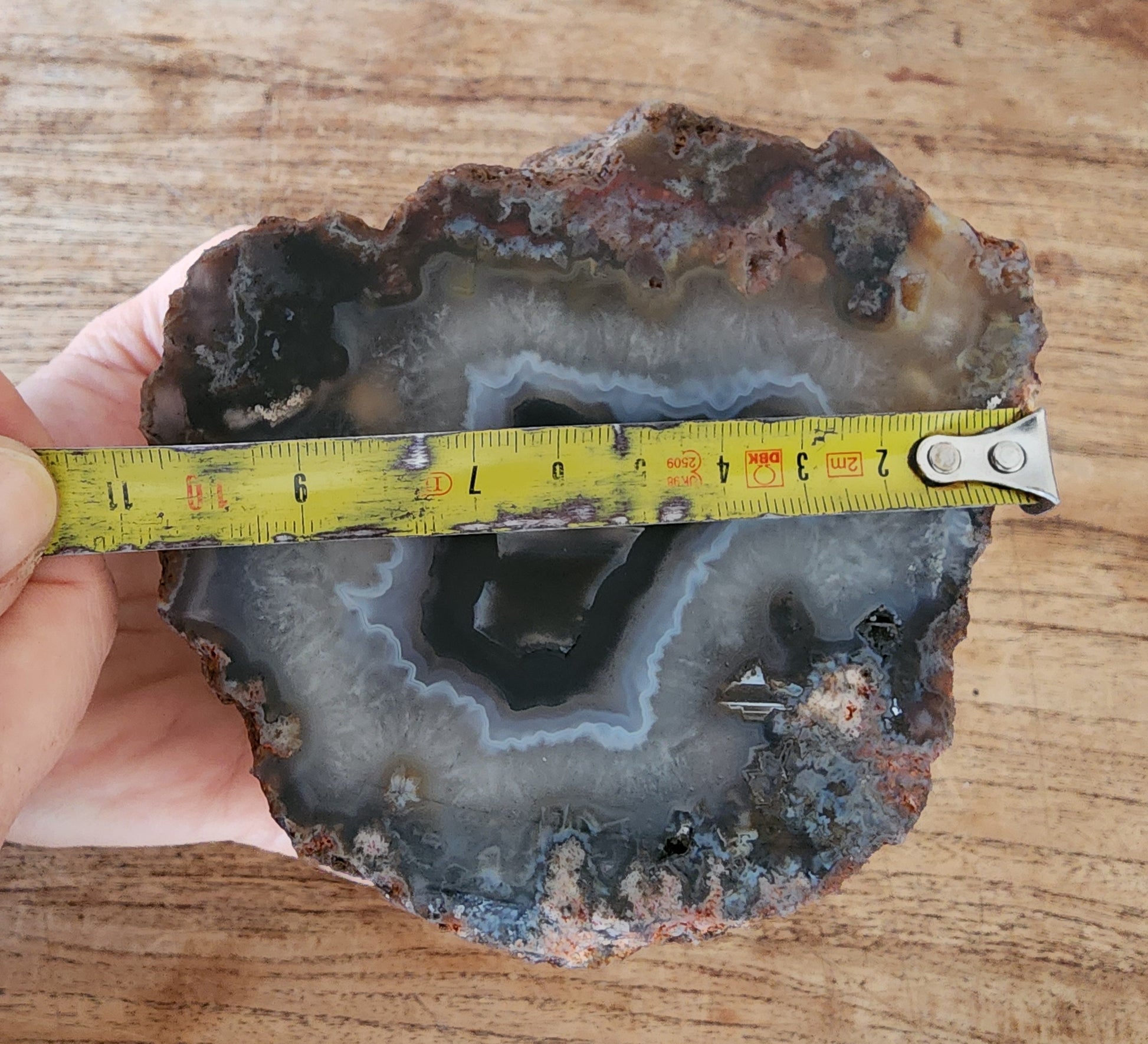 IMPORTANT 2 👉 When you receive this thunder egg agate slice, the colors will look like they do in the pictures that show the dimensions. You can polish it yourself, or have it polished. Or, as some prefer, not polish it at all -- completely up to you.