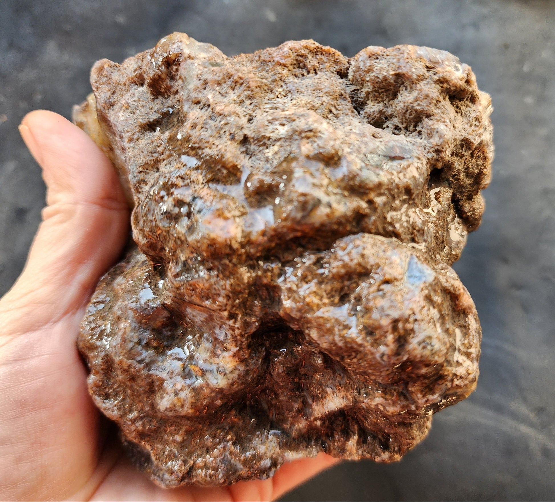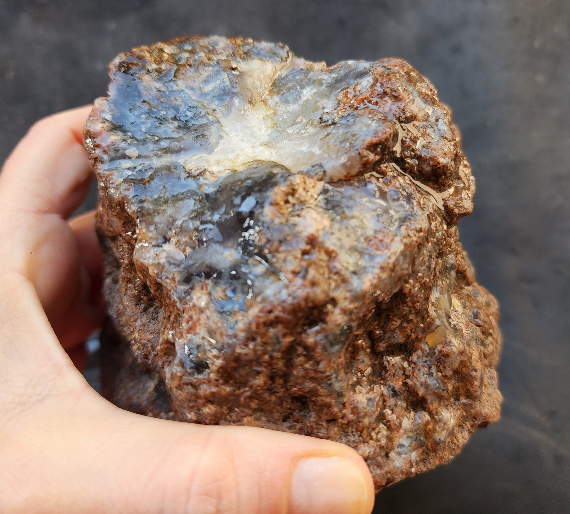 This listing is for one unpolished, undyed, 100% natural large waterline agate / floater thunder egg agate slab from Turkey weighing a total of 2.6 lbs (1.18 kg). The first 9 pictures and video were taken outdoors with the thunder egg / thunderegg wet (not under direct sunlight); the rest, indoors and dry. We did not apply any filters to the photos or video, before or after taking them. It will grace any rock cabinet, any rock collection.
