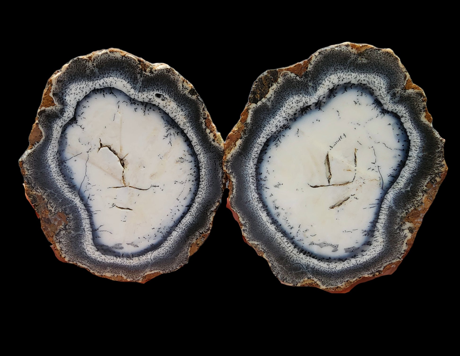 This rough opal pair is also a healing stone -- it's perfect for chakra balancing, manifestation, and divination if you are spiritually-inclined and interested in metaphysical rocks, meditation rocks, and spiritual stones. It's an ideal opal gift, rock gift, geology gift or rock hound gift. Aside from being a perfect collectible opal and an equally perfect gift, it's spectacular in terms of lapidary materials -- the possibilities are endless. It's one of those dendritic opals that are perfect for all occasions and purposes. As an opal display piece, it would light up any space.