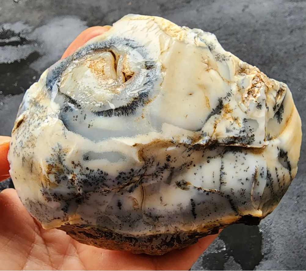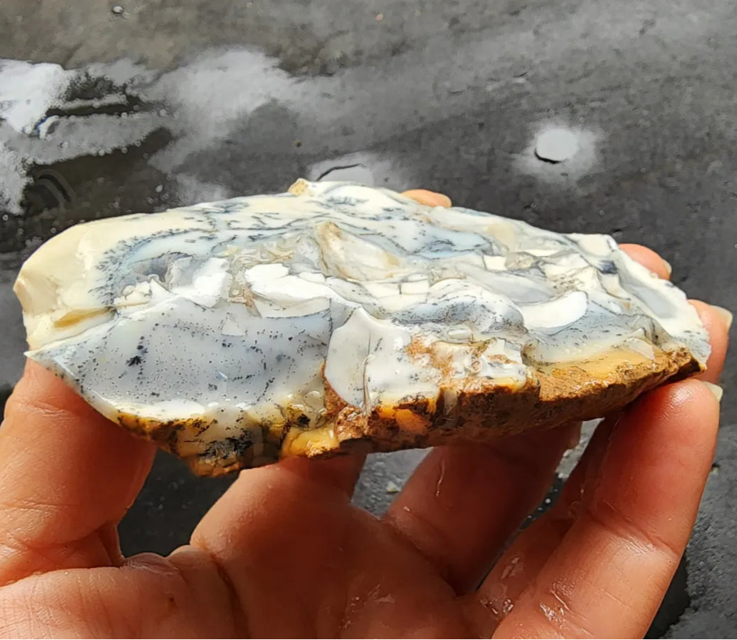 IMPORTANT 👉 When you receive this dendritic opal slab / dendritic opal rough, the colors will look like they do in the pictures that show the weight and dimensions. You can polish it yourself, or have it polished. Or, as some prefer, not polish at all -- completely up to you.