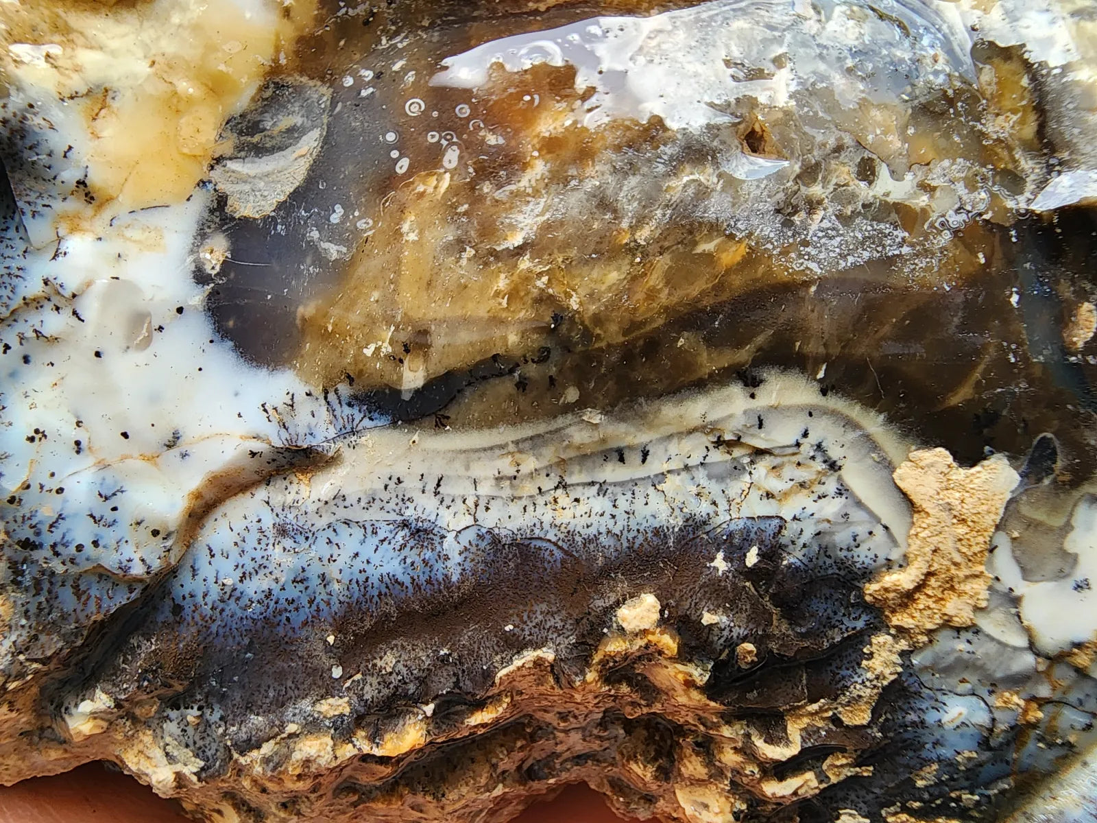 Aside from looking like a million bucks, this dendritic opal is also a spirit rock -- it's perfect for energy, manifestation, and chakra work if you are interested in spiritual rocks, meditation objects, and healing gifts. It's great gift, in general--home gift, office gift, birthday gift...you name it. It will display very handsomely as home decor / office decor / room decor once it's polished. Needless to say, it's quite impressive as far as lapidary materials go.