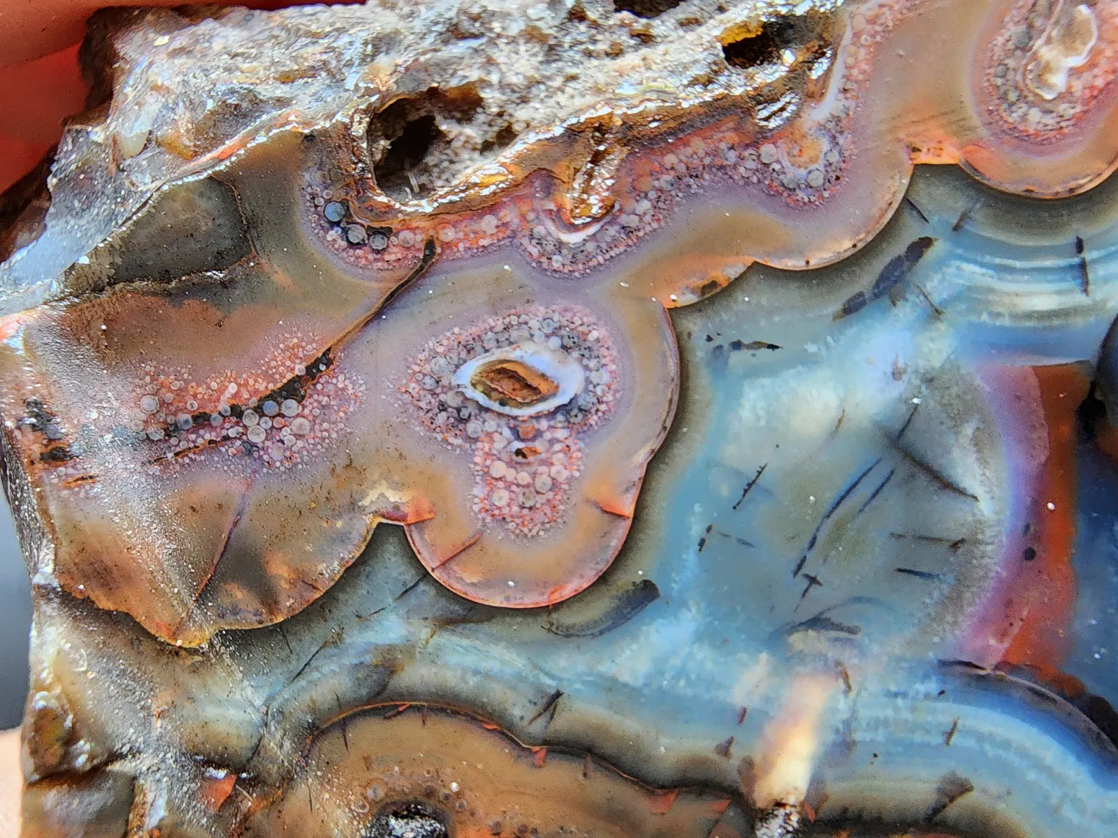 This listing is for an unpolished, undyed, 100% natural floater agate / eye agate pair from Turkey weighing a total of 12.48 oz (354 gr). The first nine pictures and video were taken outdoors with the fortification agate wet (not under direct sunlight); the rest, indoors and dry. We did not apply any filters to the photos or video, before or after taking them. It will grace any rock cabinet, any rock collection.