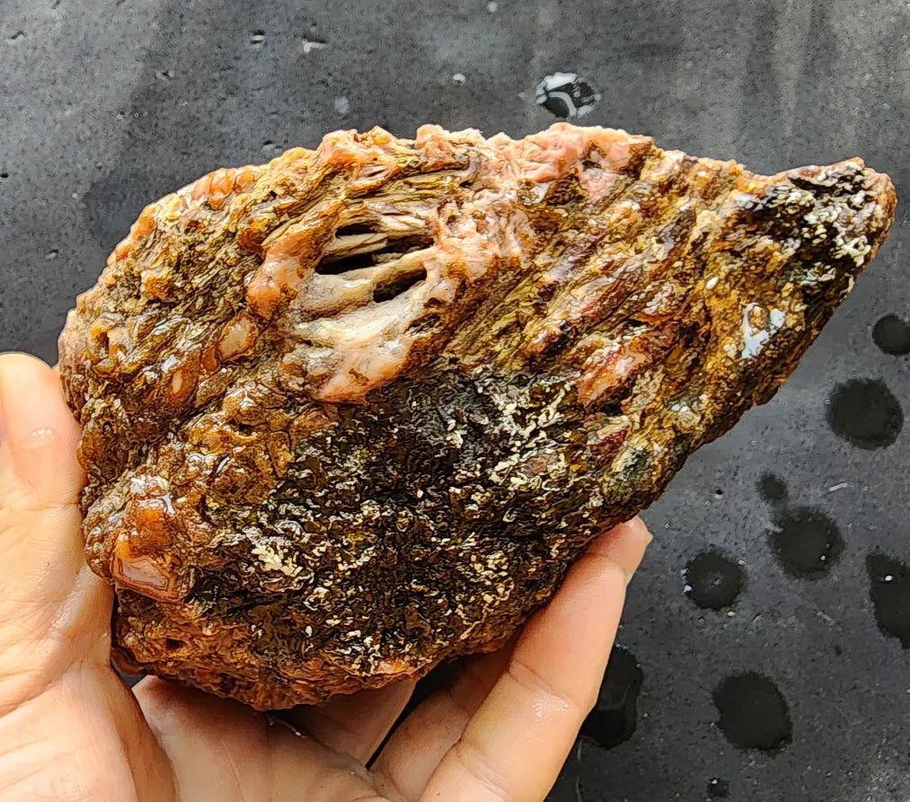 Aside from having a very distinct look, this pink agate rough is also a healing stone -- it's perfect for energy, manifestation, and chakra work if you are spiritually-inclined and interested in healing stones, meditation rocks, and healing gifts. Speaking of gifts, it would work wonders as a rock hound gift or geology gift, or as part of an existing or starter rock collection. Thinking in terms of decorative stones? You can't go wrong with this pink agate slab as home decor, office decor, room decor...any sort of space decor. Needless to say, if you're looking for lapidary materials, the slabs and cabs you can get from this beauty is just...beyond words.