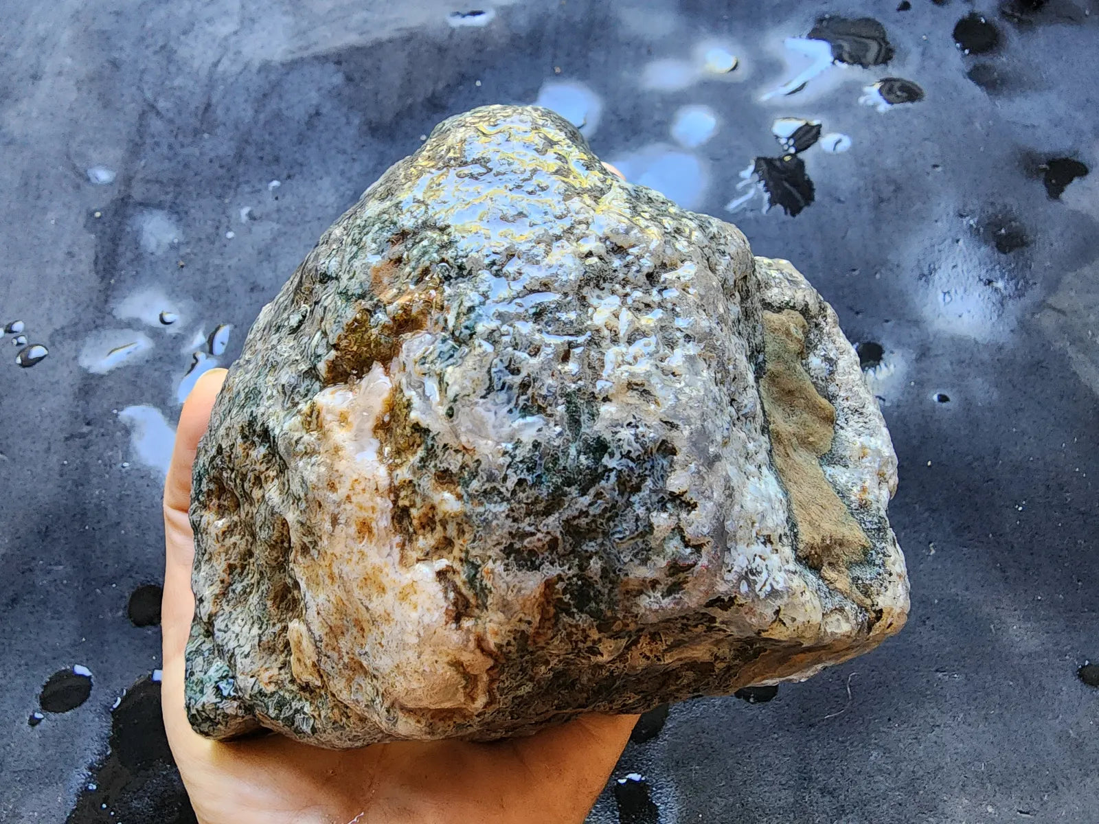 Aside from having a very distinct look, this moss agate is also a healing stone -- it's perfect for energy, manifestation, and chakra work if you are spiritually-inclined and interested in healing stones, meditation rocks, and healing gifts. Speaking of gifts, it would work wonders as a rock hound gift or geology gift, or as part of an existing or starter rock collection. It's quite versatile as a "rock"--you could easily use it as home decor or office decor, too.