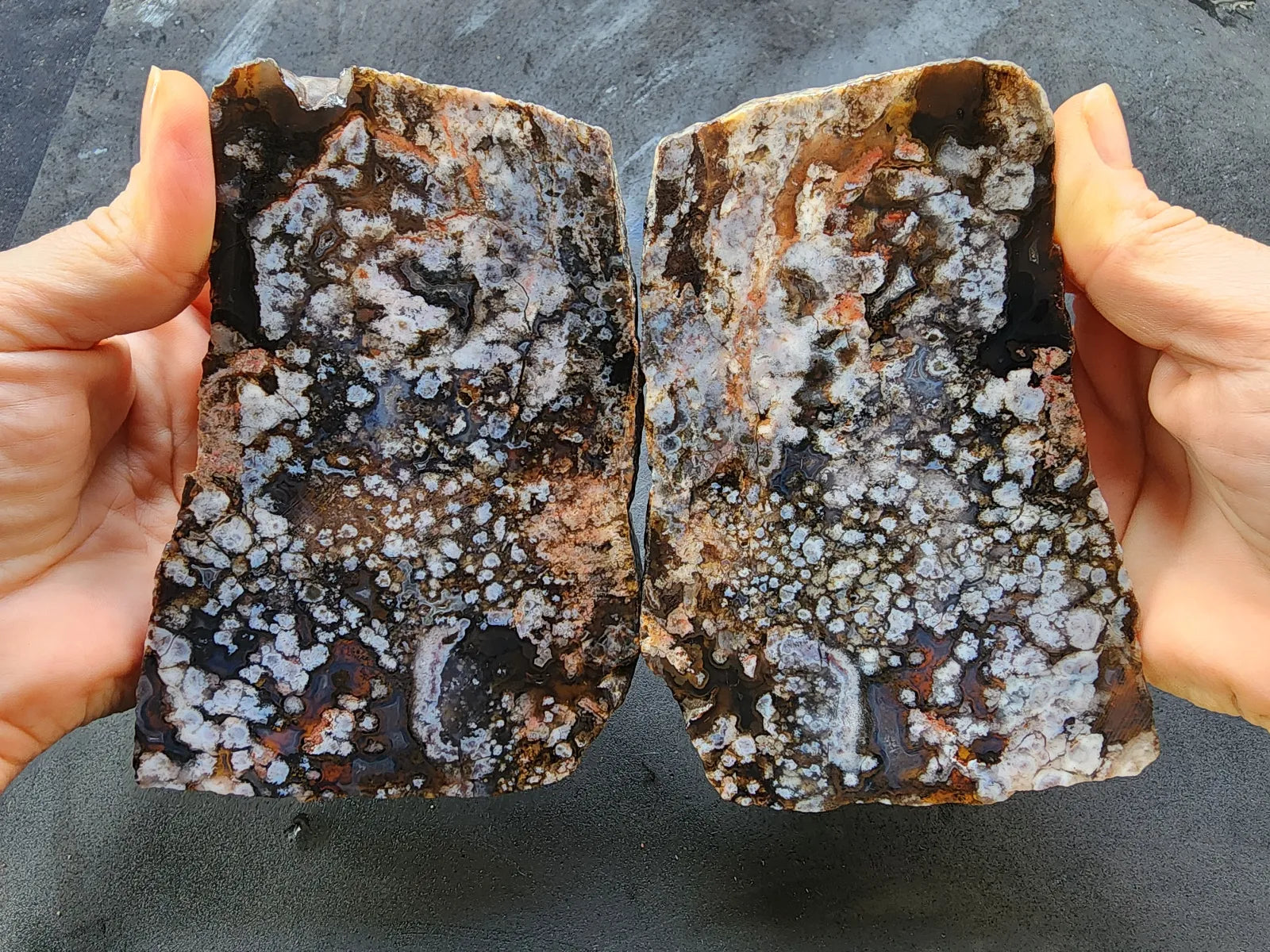 IMPORTANT 👉 When you receive this flower agate pair, the colors will look like they do in the weight and dimension photos. You can polish them yourself, or have them polished. Or, as some prefer, not polish them at all -- completely up to you.