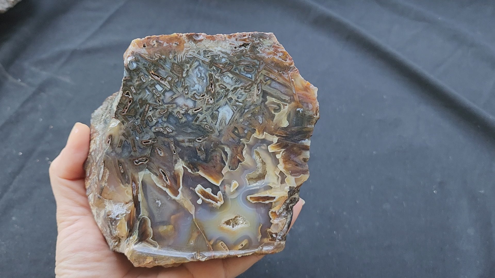 This listing is for one unpolished, undyed, 100% natural decorative agate / stick agate slab from Turkey. The first six pictures and video were taken outdoors with the collectible agate wet (not under direct sunlight); the rest, indoors and dry. We did not apply any filters to the photos or video, before or after taking them.