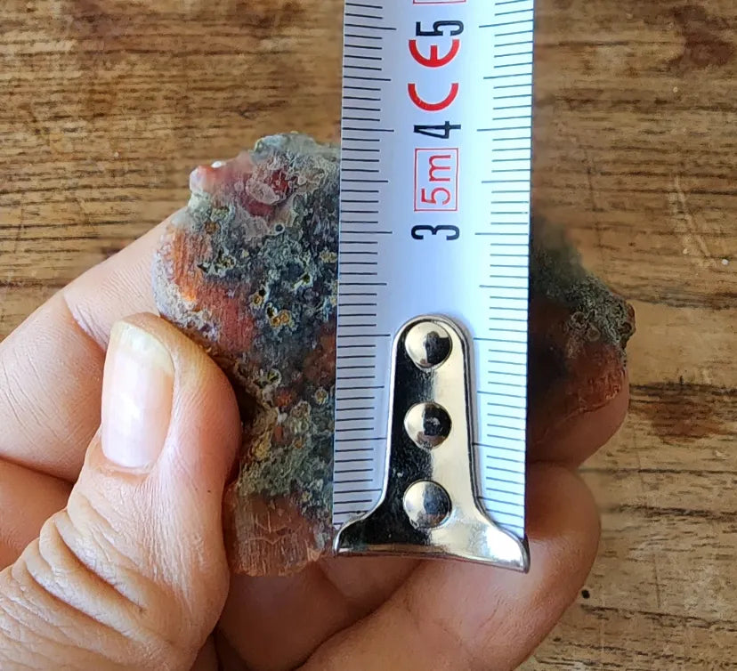 This listing is for an unpolished, undyed, 100% natural dark orange agate / moss agate pair from Turkey weighing a total of 1.86 oz (53 gr). The first 15 pictures and video were taken outdoors with the colorful agate wet (not under direct sunlight); the rest, indoors and dry. We did not apply any filters to the photos or video, before or after taking them. They will grace any rock cabinet, any rock collection--not to mention provide wonderful cabs if you're looking for cabbing rough.
