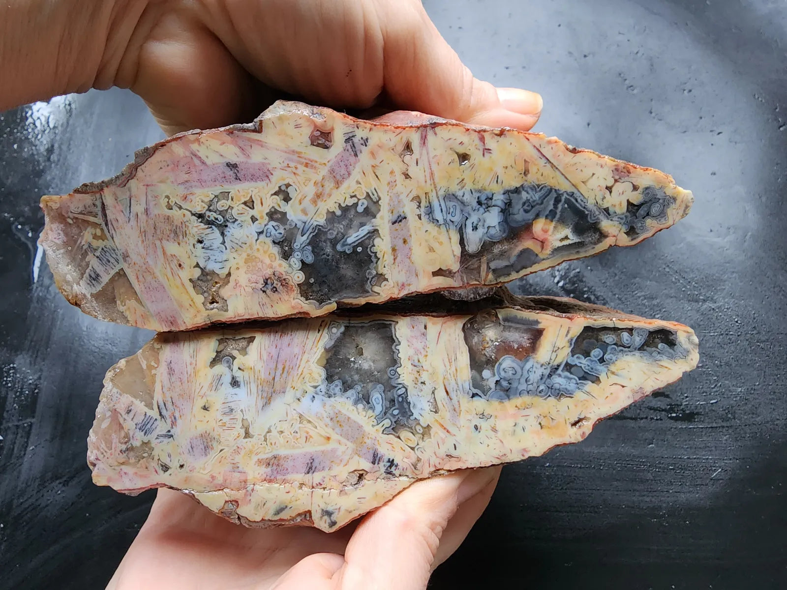 IMPORTANT 👉 When you receive this collectible agate pair, the colors will look like they do in the weight and dimension photos. You can polish them yourself, or have them polished. Or, as some prefer, not polish them at all -- completely up to you.