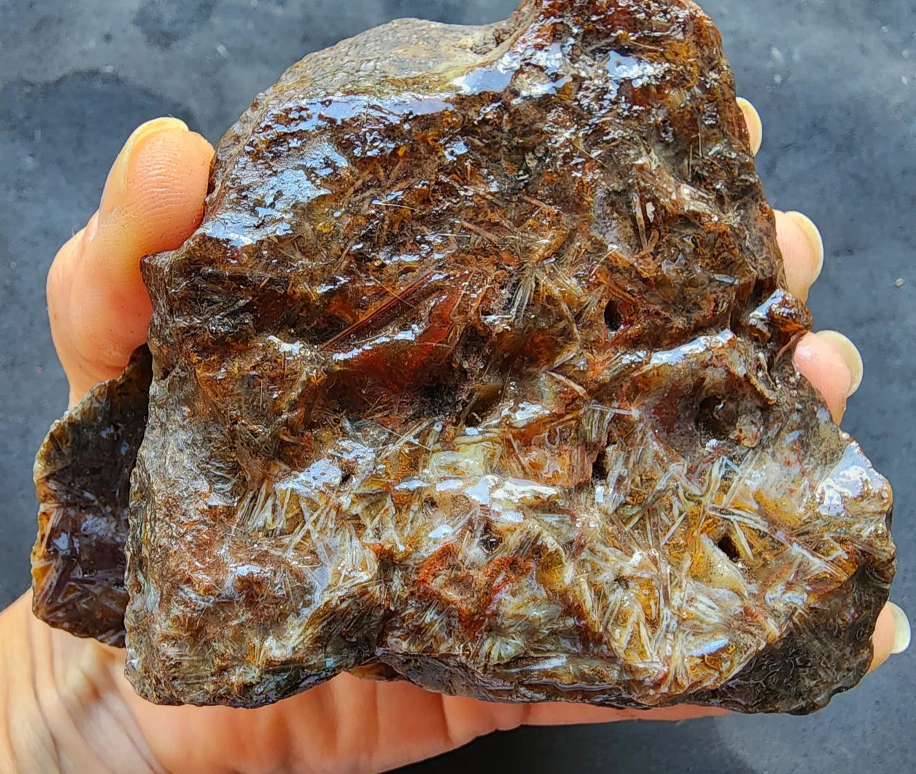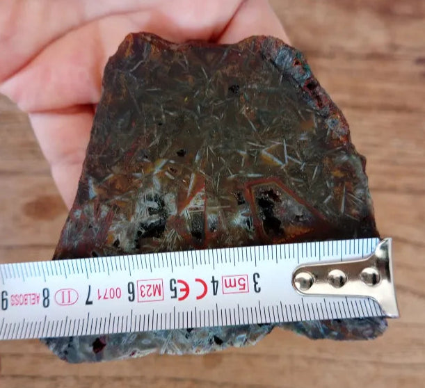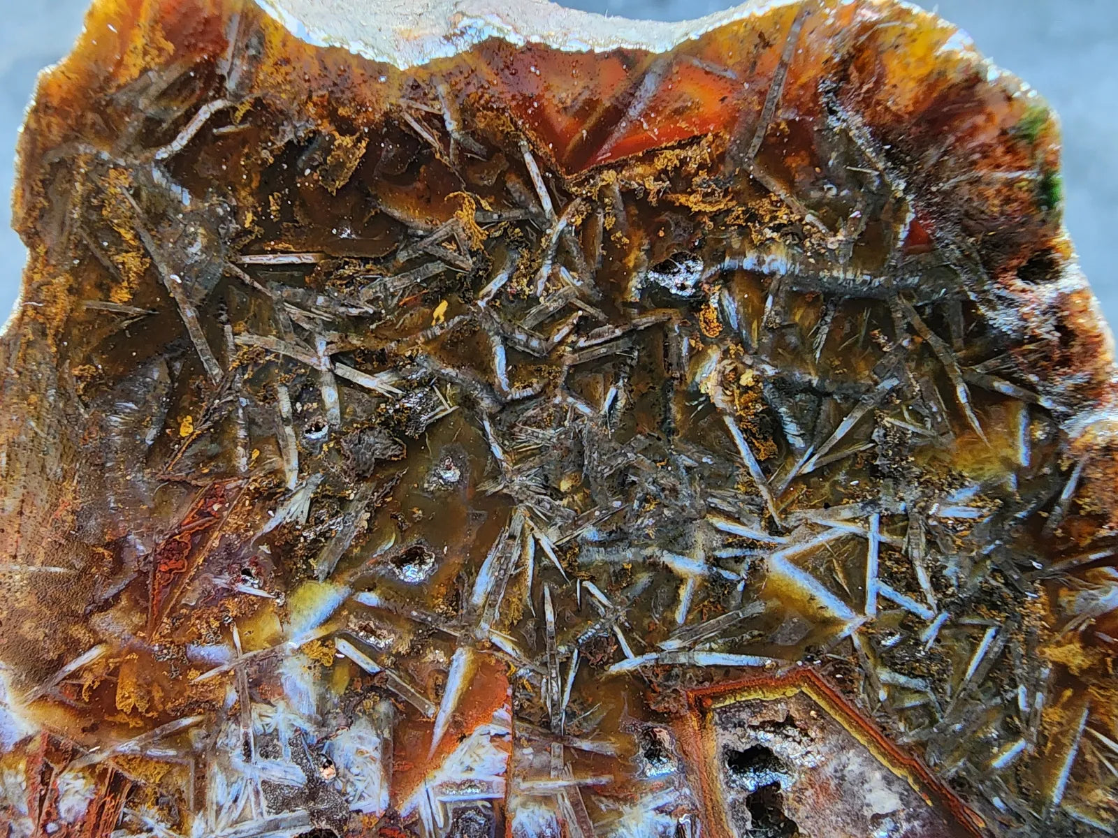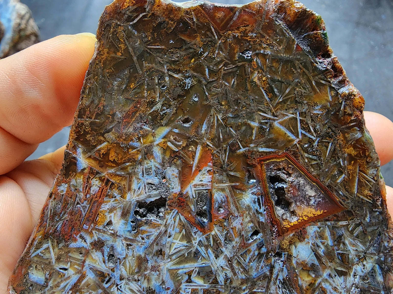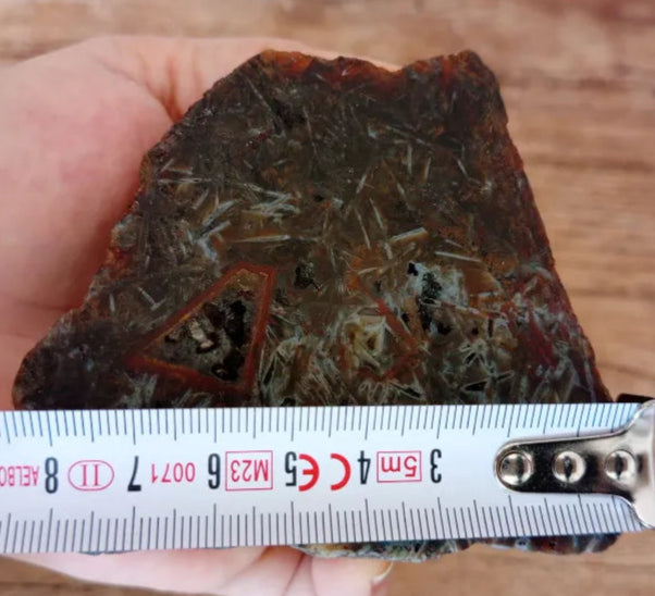 This needle agate is also a healing stone -- it's perfect for chakra balancing, manifestation, and divination if you are spiritually-inclined and interested in metaphysical rocks, meditation stones, and spiritual gifts. It's an ideal agate gift, geologist gift or rock hound gift and will display very handsomely as an agate decor piece -- home decor, office decor, or room decor. It can be displayed as an interior design element in any space.
