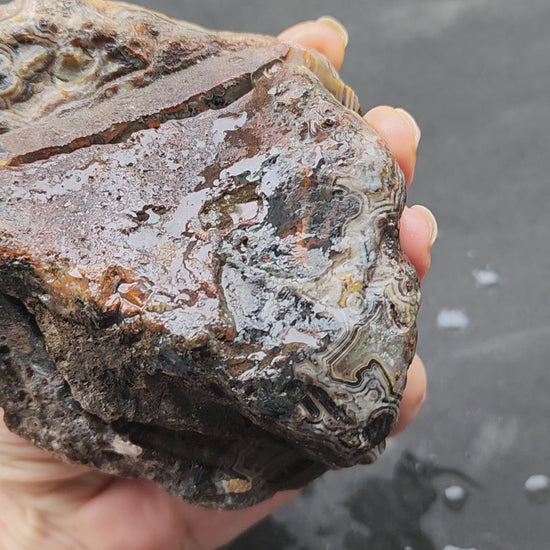 This listing is for an unpolished, undyed, 100% natural cyrstal agate stone from Turkey. The first 11 pictures and video were taken outdoors with the banded agate stone wet (not under direct sunlight); the rest, indoors and dry. We did not apply any filters to the photos or video, before or after taking them.