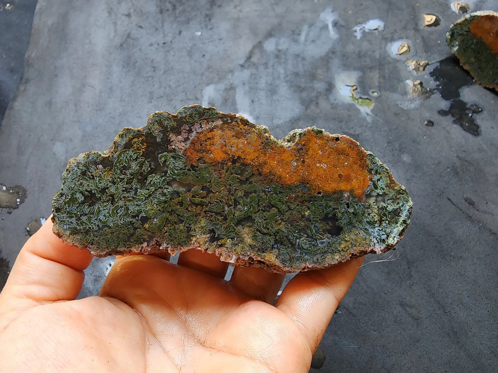 This listing is for an unpolished, undyed, 100% natural plume agate rough / moss agate rough pair from Turkey weighing a total of 19.36 oz (549 gr). The first 9 pictures and video were taken outdoors with the Turkish agate pair wet (not under direct sunlight); the rest, indoors and dry. We did not apply any filters to the photos or video, before or after taking them. They will grace any rock collection and turn out sensational cabs and slabs.