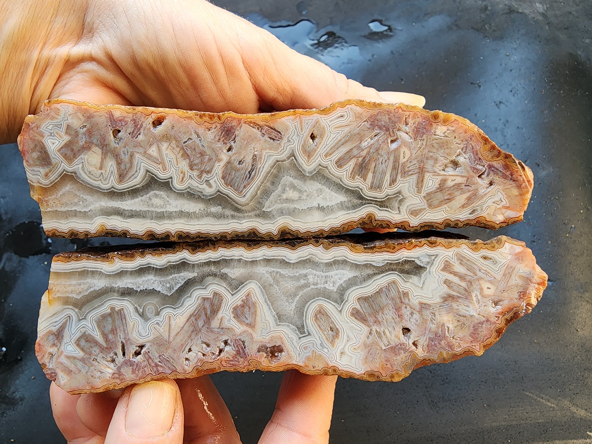 IMPORTANT 👉 When you receive this quartz agate pair, the colors will look like they do in the dimension photos. You can polish them yourself, or have them polished. Or, as some prefer, not polish them at all -- completely up to you.