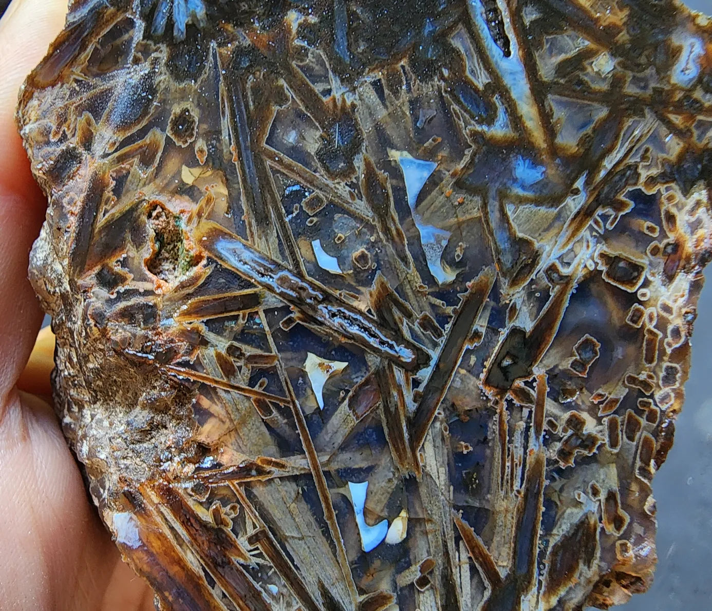 This listing is for an unpolished, undyed, 100% natural stick agate / tube agate pair from Turkey weighing a total of 23.73 oz (673 gr). The first ten pictures and video were taken outdoors with the agate halves wet (not under direct sunlight); the rest, indoors and dry. We did not apply any filters to the photos or video, before or after taking them.