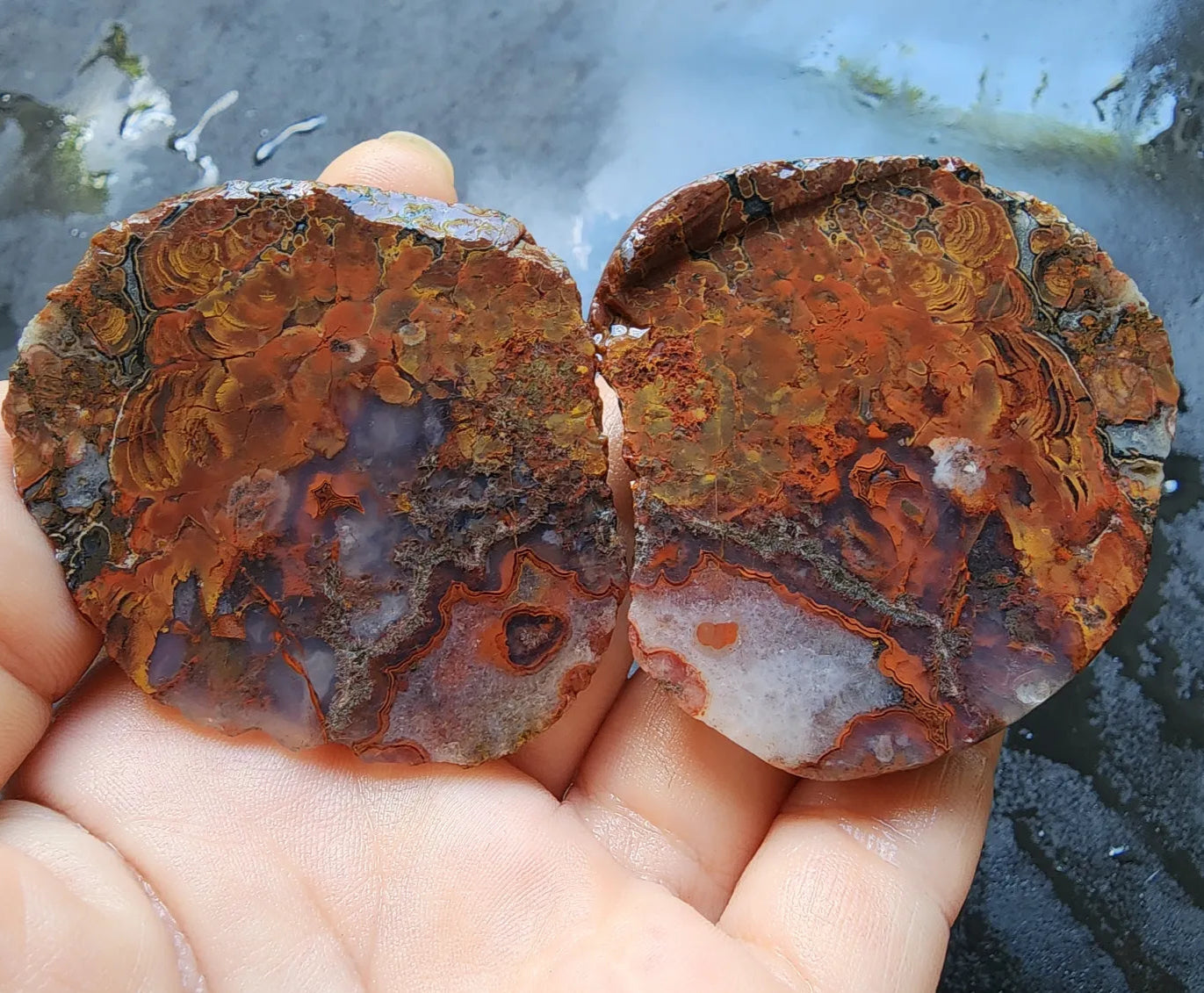 IMPORTANT 👉 When you receive this agatized fossil pair, the colors will look like they do in the weight and dimension photos. You can polish them yourself, or have them polished. Or, as some prefer, not polish at all -- completely up to you.