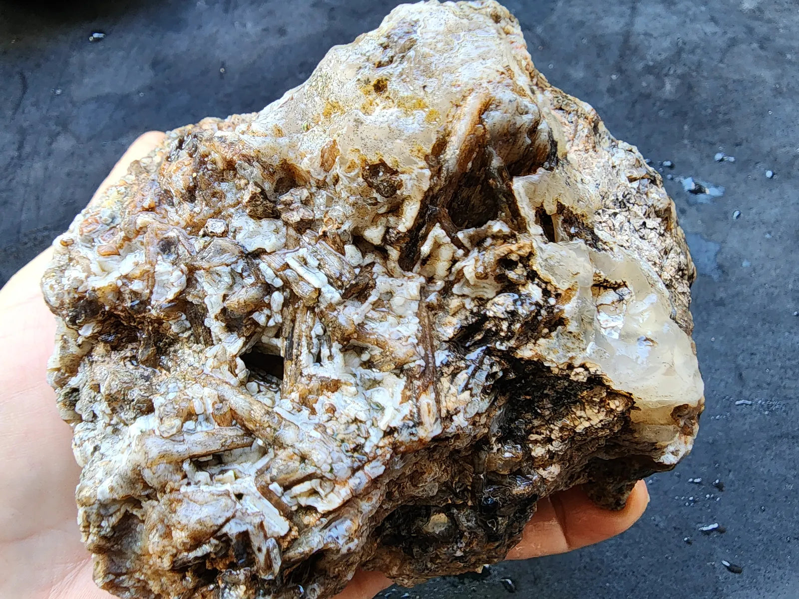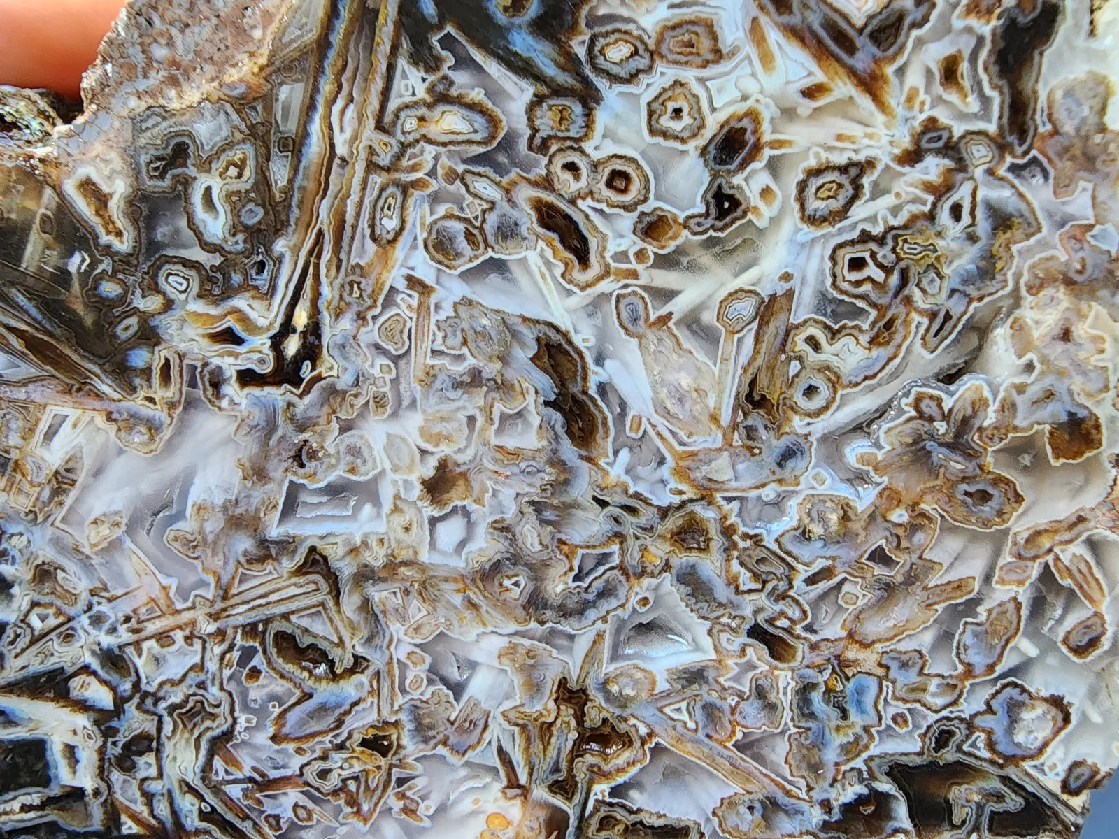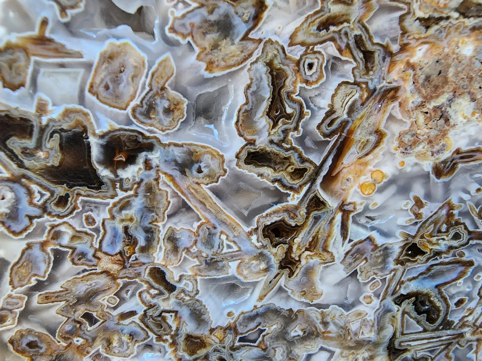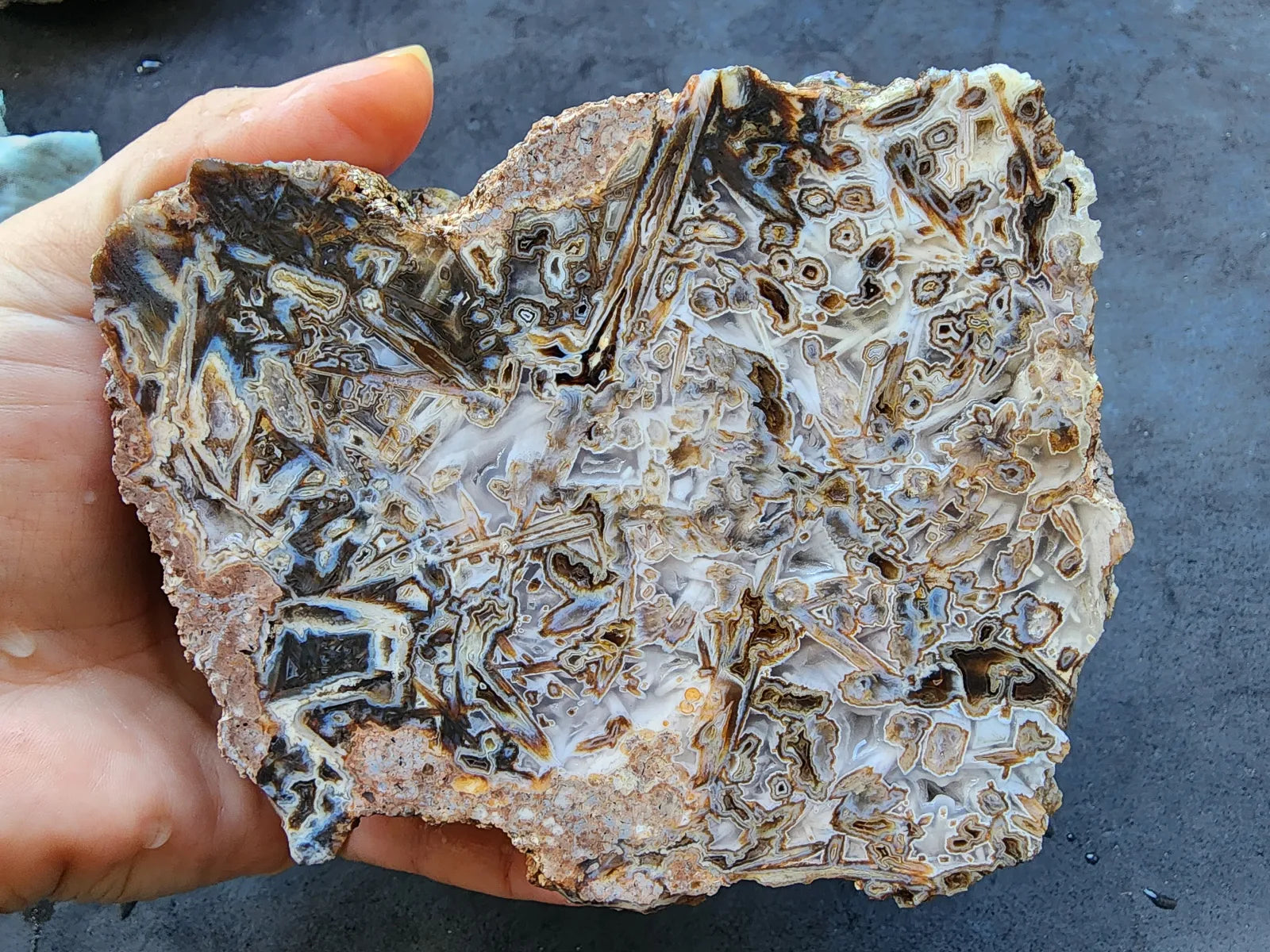 This listing is for an unpolished, undyed, 100% natural pseudomorph agate slab from Turkey weighing a total of 34.03 oz (965 gr). The first 12 pictures and video were taken outdoors with the agate rough wet (not under direct sunlight); the rest, indoors and dry. We did not apply any filters to the photos or video, before or after taking them. It will grace any rock collection, grace any area. It will provide wonderful cabs, slabs, and jewelry if you are looking for rocks for jewelry. The photos and video speak volumes.