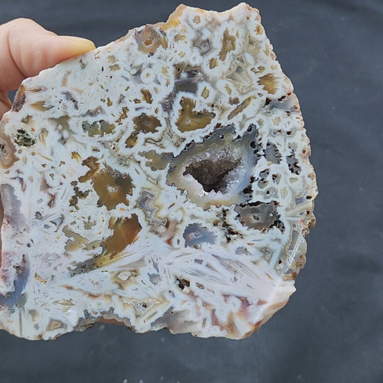 This listing is for one unpolished, undyed, 100% natural white tube agate /tube agate slab from Turkey. The first eight pictures and video were taken outdoors with the white agate wet (not under direct sunlight); the rest, indoors and dry. We did not apply any filters to the photos or video, before or after taking them.